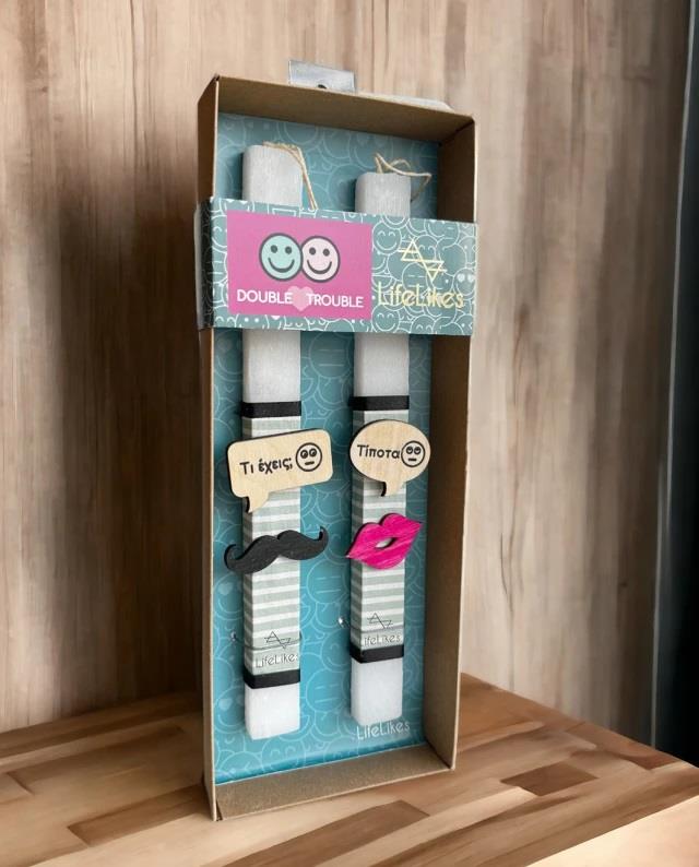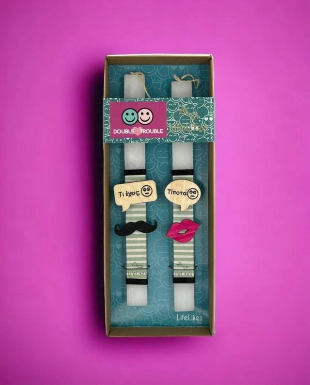 For couples having the classic \"What do you have?\" \"Nothing!\", this unique candle set is the right choice! The candles are decorated with wooden elements, each with a wooden cloud, with the phrases \"What have you?\" and nothing!\". The candles are in a box with a matching design.
