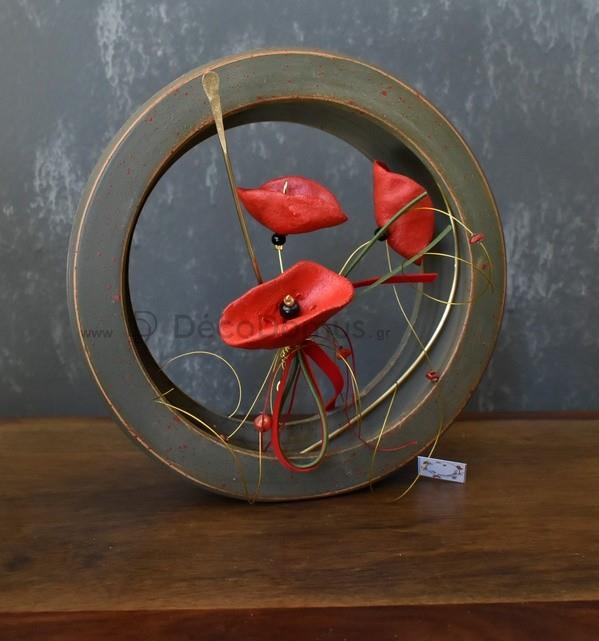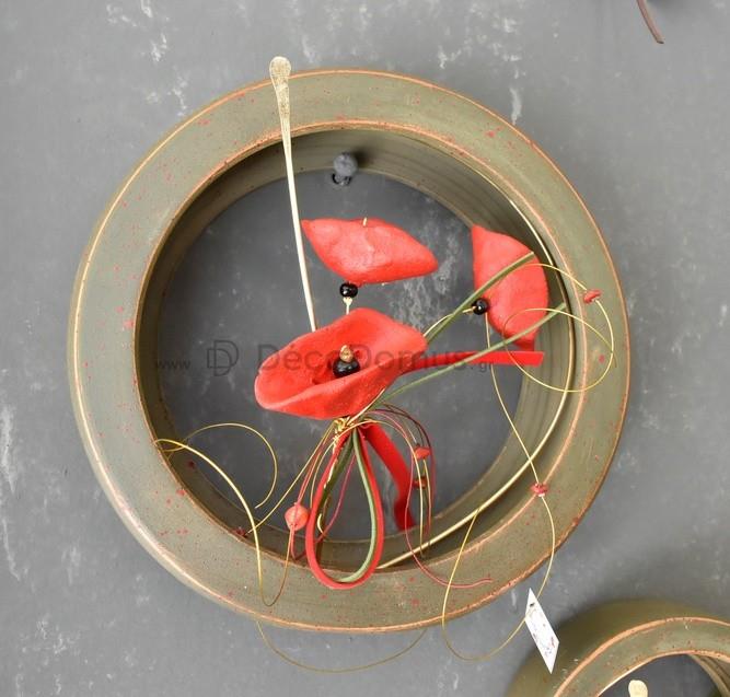 Ceramic poppy in a ceramic circle with a diameter of 19.5 cm with metal details.