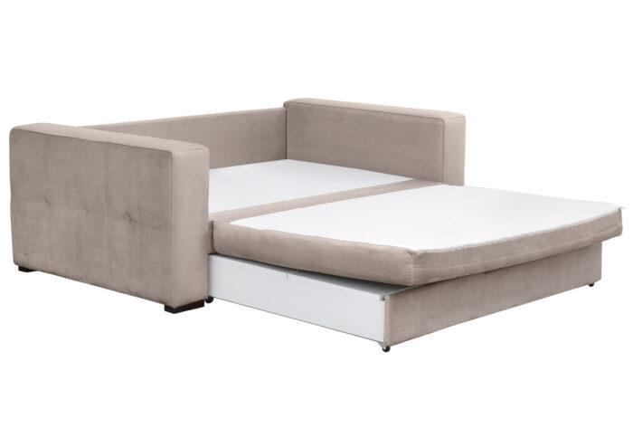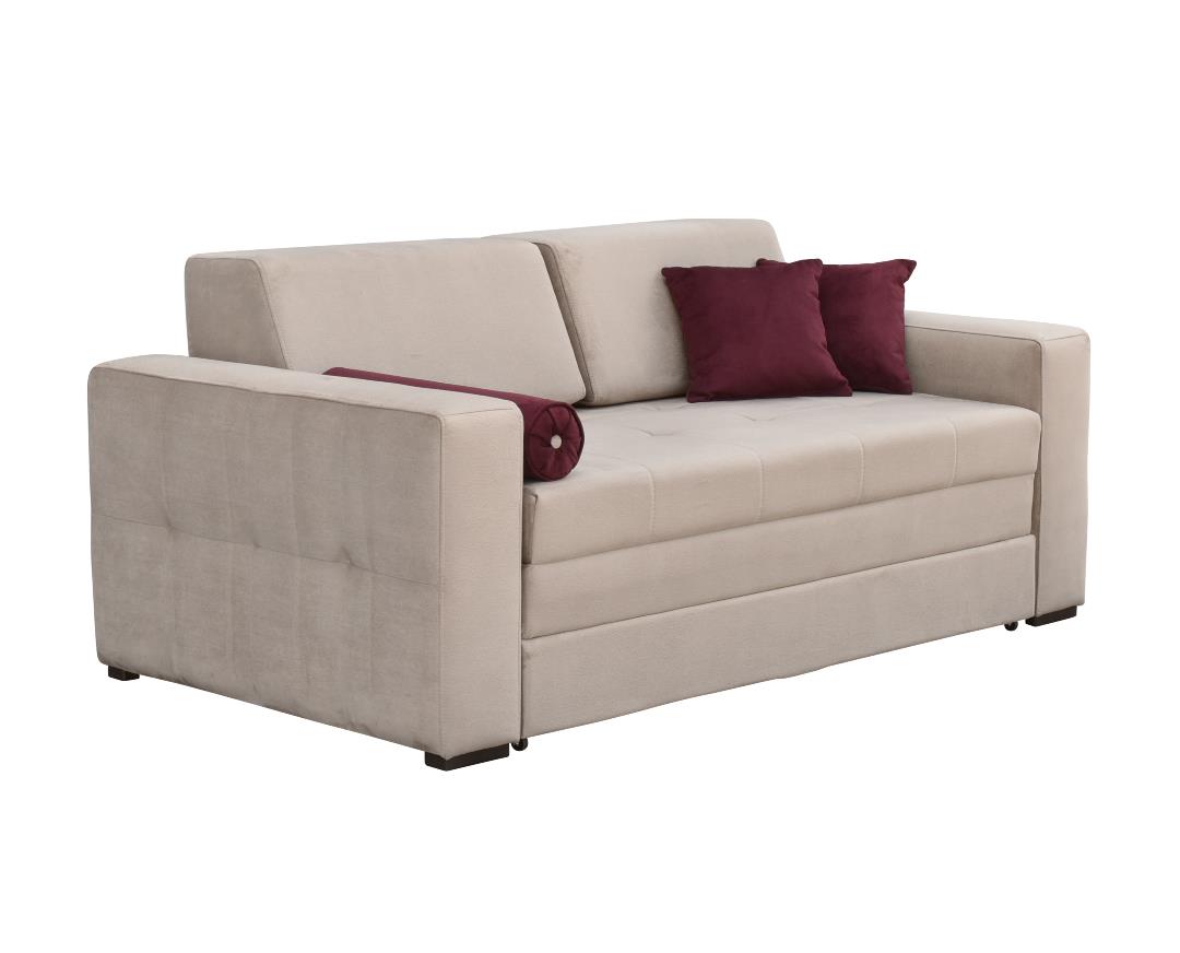 Three-seater sofa with double bed 160*195cm and storage space. Sky cell foam core, medium hardness. Suitable for everyday sleep. By pulling the drawer on wheels, we raise the folding mattress of the seat and a double bed is created, while under the lid of the drawer it provides you with storage space. Easy conversion into a bed and vice versa into a sofa with 3 movements. It is suitable for commercial premises due to the excellent construction quality, functionality, aesthetics and price. The price includes the fabric, bed and storage space.PACK OF 3 BOXES