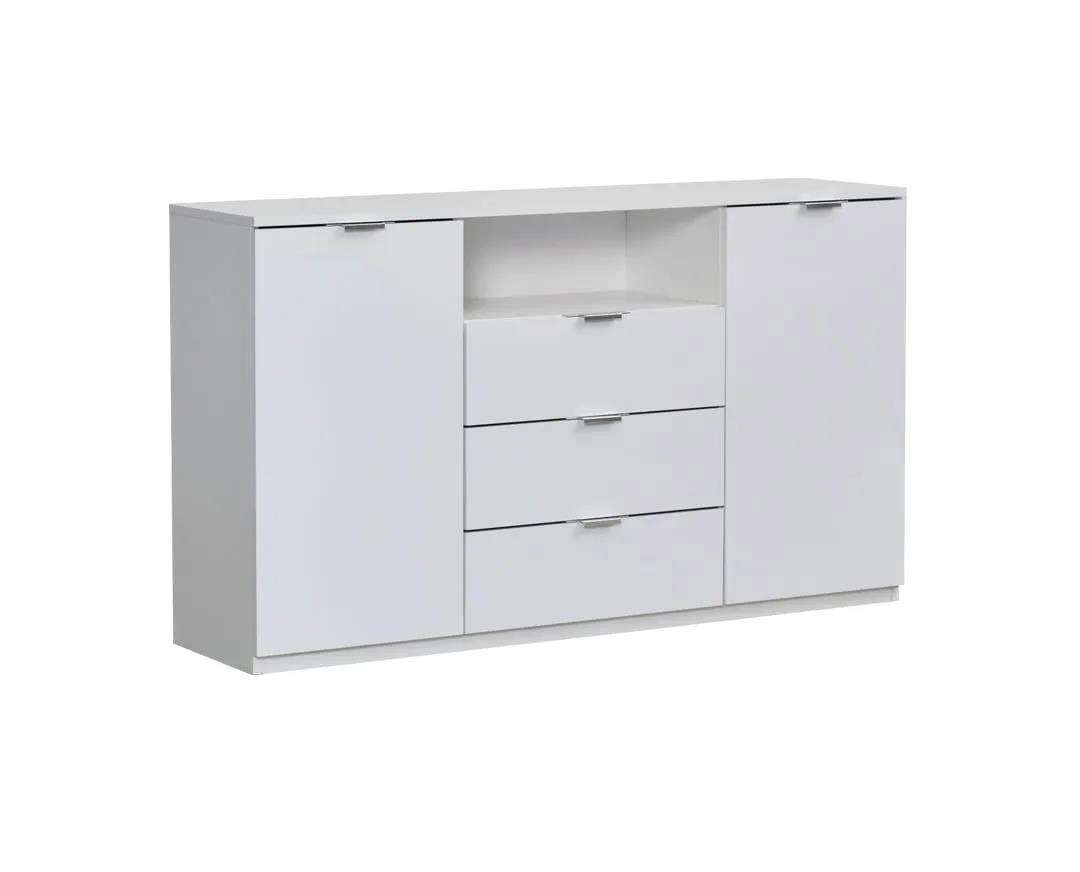 Ideal dresser, sideboard for all areas of the house for storage, arranging things.Also ideal for a TV stand. It has 2 cabinets with 3-level shelves on the two doors on the right and left of the furniture, while in the middle 3 external deep drawers with telescopic mechanisms. It also has an open shelf in the middle of the furniture for DVD, CD, home cinema, playstation... The handles are made of aluminum for higher aesthetics and greater durability. Modern coloring in the color of Ammos in High gloss glossy and Nordic Oak. Using new top quality materials, FUNDERMAX chipboard, Hettich mechanisms, Furnika technology, we offer you a complete range of Grande products of absolute quality, modern aesthetics, fresh colors, affordable price, excellent value for money.
