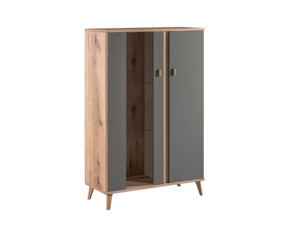 Showcase low Porto Artisan/Grey 90x35x133cm. Melamine L0.9W0.35Y1.33