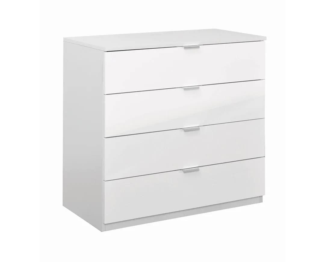 Chest of drawers with 4 internal deep drawers with telescopic mechanisms. Aluminum handles for higher aesthetics and durability. Modern and timeless coloring in high gloss white. Using new top quality materials, FUNDERMAX chipboard, Hettich mechanisms, Furnika technology, we offer you a complete range of Grande products of absolute quality, modern aesthetics, fresh colors, affordable price, excellent value for money