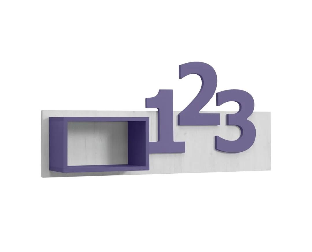 Wall shelf with numbers Numero Purple Melamine L1.20W0.22H0.54