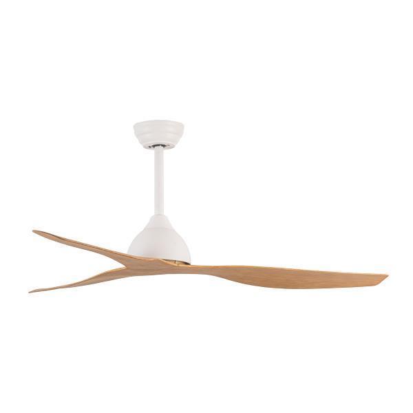 Golden Series ceiling fan, in white-light wood color. Ideal for spaces of 25m². Suitable for winter and summer indoors and outdoors thanks to IP44 waterproofing. It uses DC MOTOR, a motor that is smaller, lighter, silent, environmentally friendly and consumes up to 50% less energy. Possibility of reverse rotation, selection between 6 speeds with a maximum speed of 186rpm and remote use with remote control. It has 3 fans with a diameter of Φ132, timer up to 4 hours. Performance 30W, net weight 4.2kg, operating sound up to 39dB. Warranty 2 years by Eurolamp.