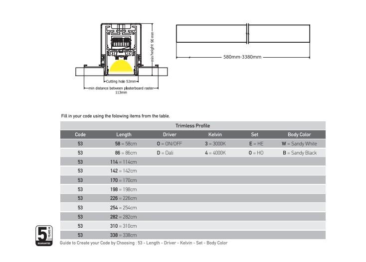 TRIMLESS PROFILE WHITE FOR LINEAR LIGHTING WITH ON-OFF DRIVER WITH 5 YEARS GUARANTEE Aluminium 58x11.3xh9
