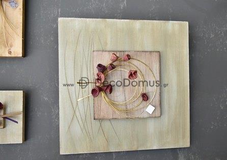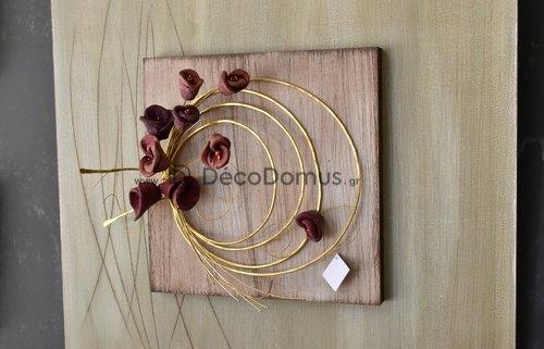 HANDMADE WOODEN BOARD WITH BURGUNDY CERAMIC FLOWERS AND BRASS 40Χ40 CM Wood L0.40W0.03H0.40