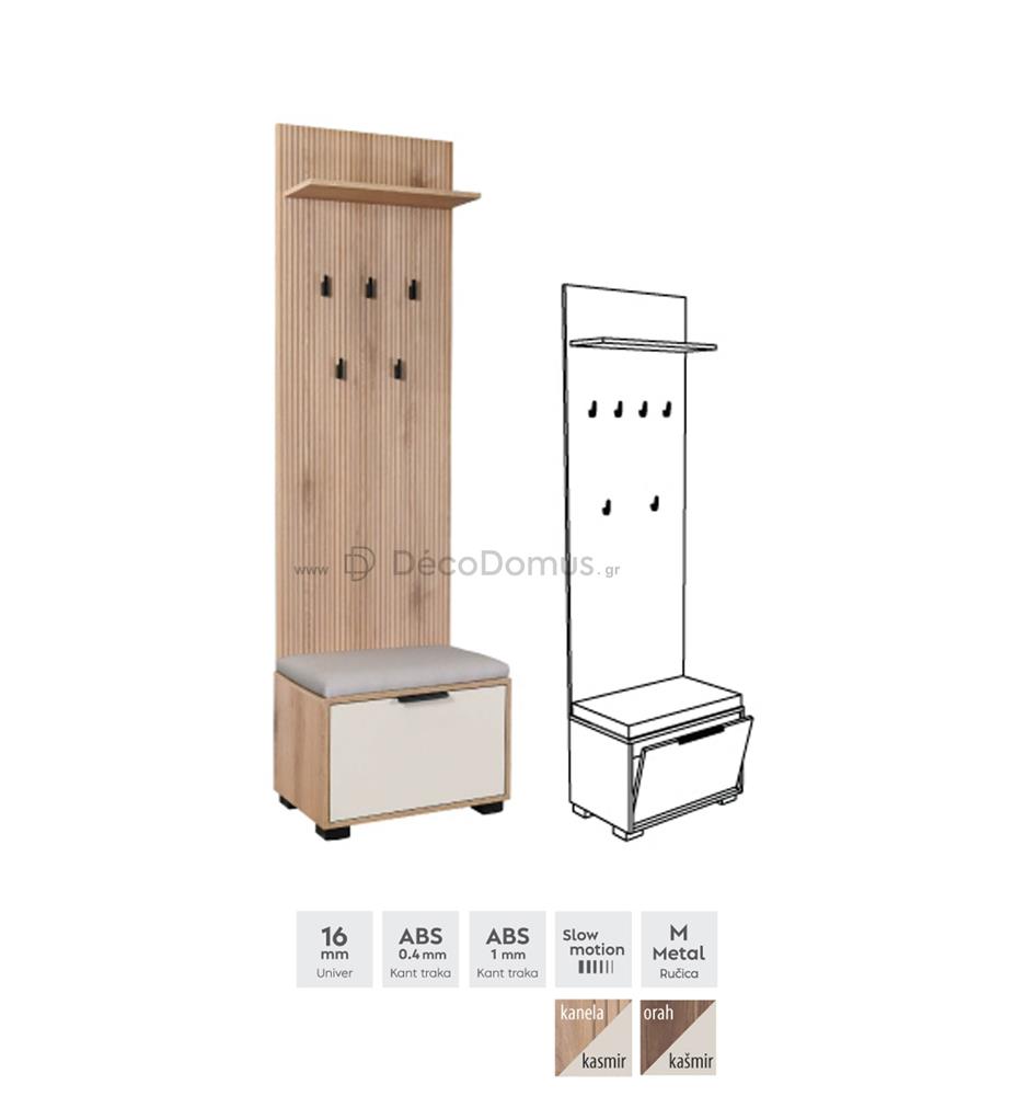 SMART series shoe rack with hanger, made of high quality MDF, in cinnamon-kasmir color.