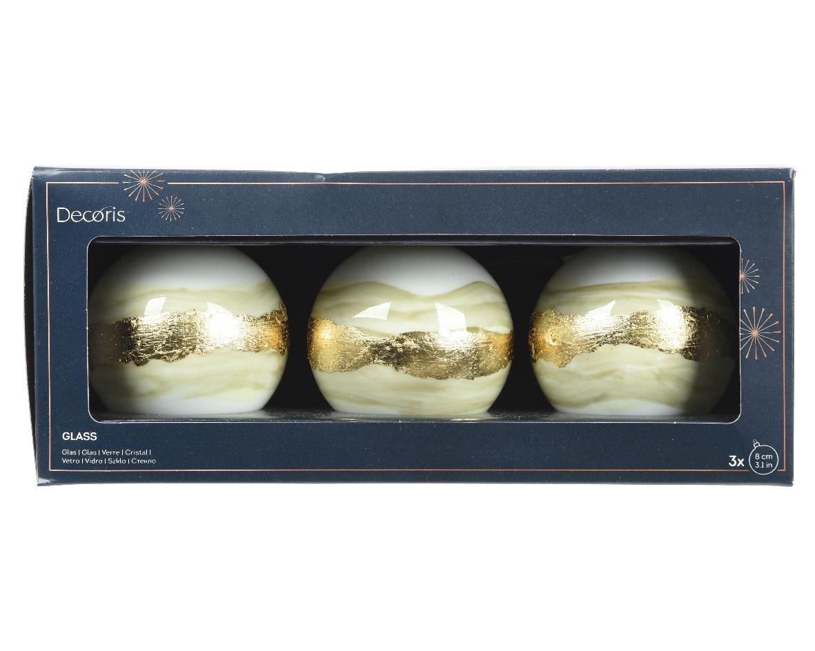 OPAQUE CHRISTMAS BALL IN WINTER WHITE COLOR AND GOLD LINE KAEMINGK Glass Φ0.08*Η0.08