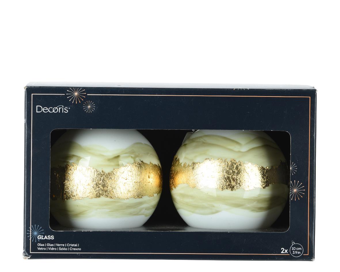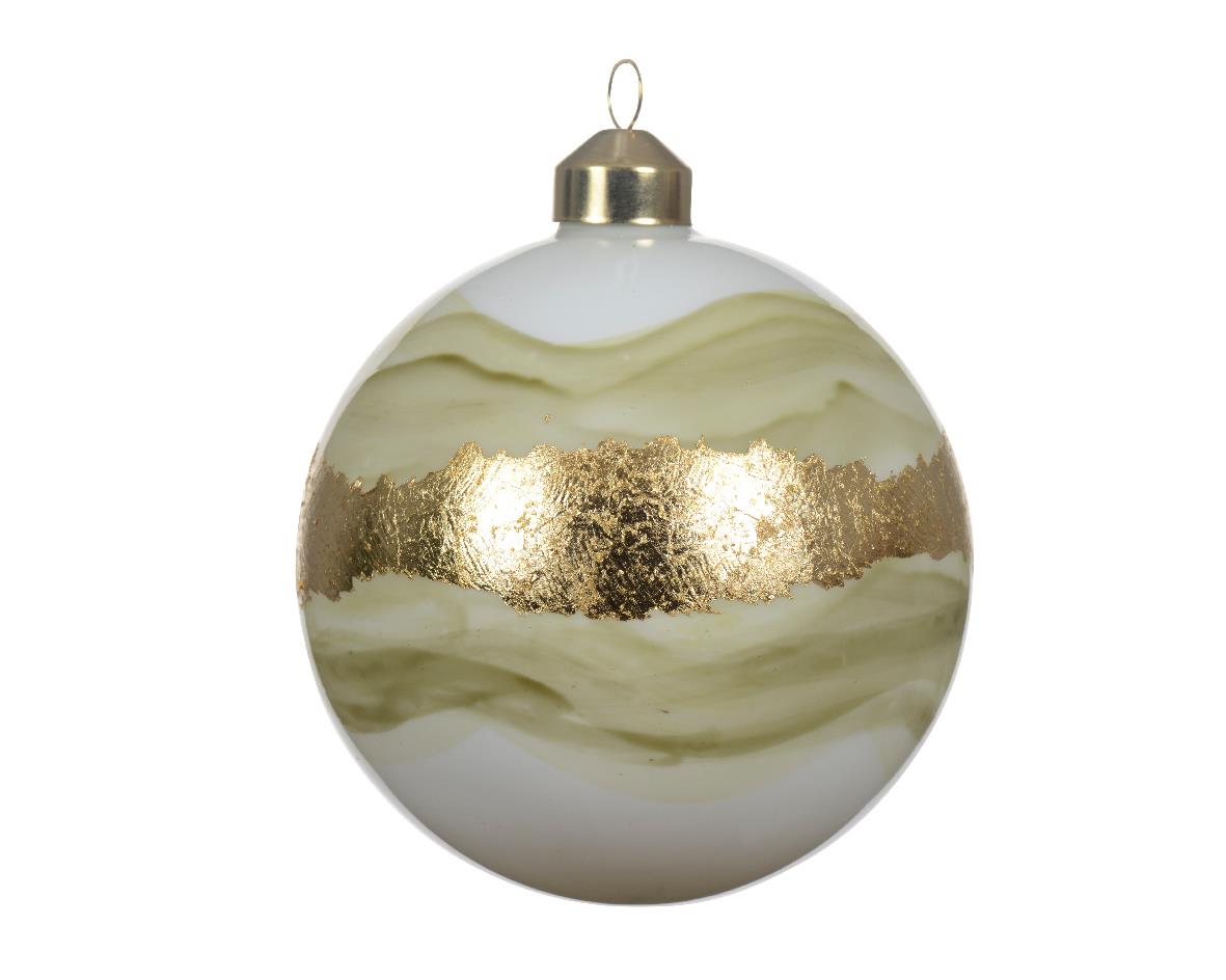 LARGE OPAQUE CHRISTMAS BALL IN WINTER WHITE COLOR AND GOLD LINE KAEMINGK Glass Φ0.10*Y0.10