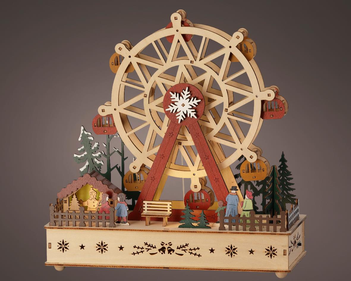 WOODEN CHRISTMAS SHENERY WITH LED LIGHTING BATTERY AND TIMER MULTICOLOR Wood L0.12W0.28H0.283
