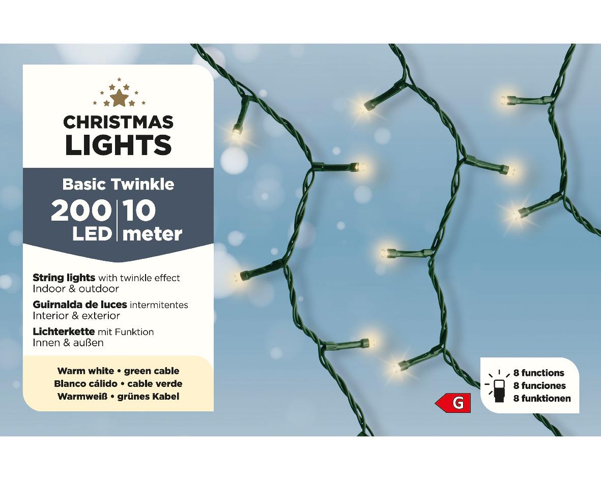 200 LED CHRISTMAS LIGHTS WITH 8 EFFECTS INDOOR & OUTDOOR GREEN WITH WARM WHITE LIGHT Synthetic L9.95