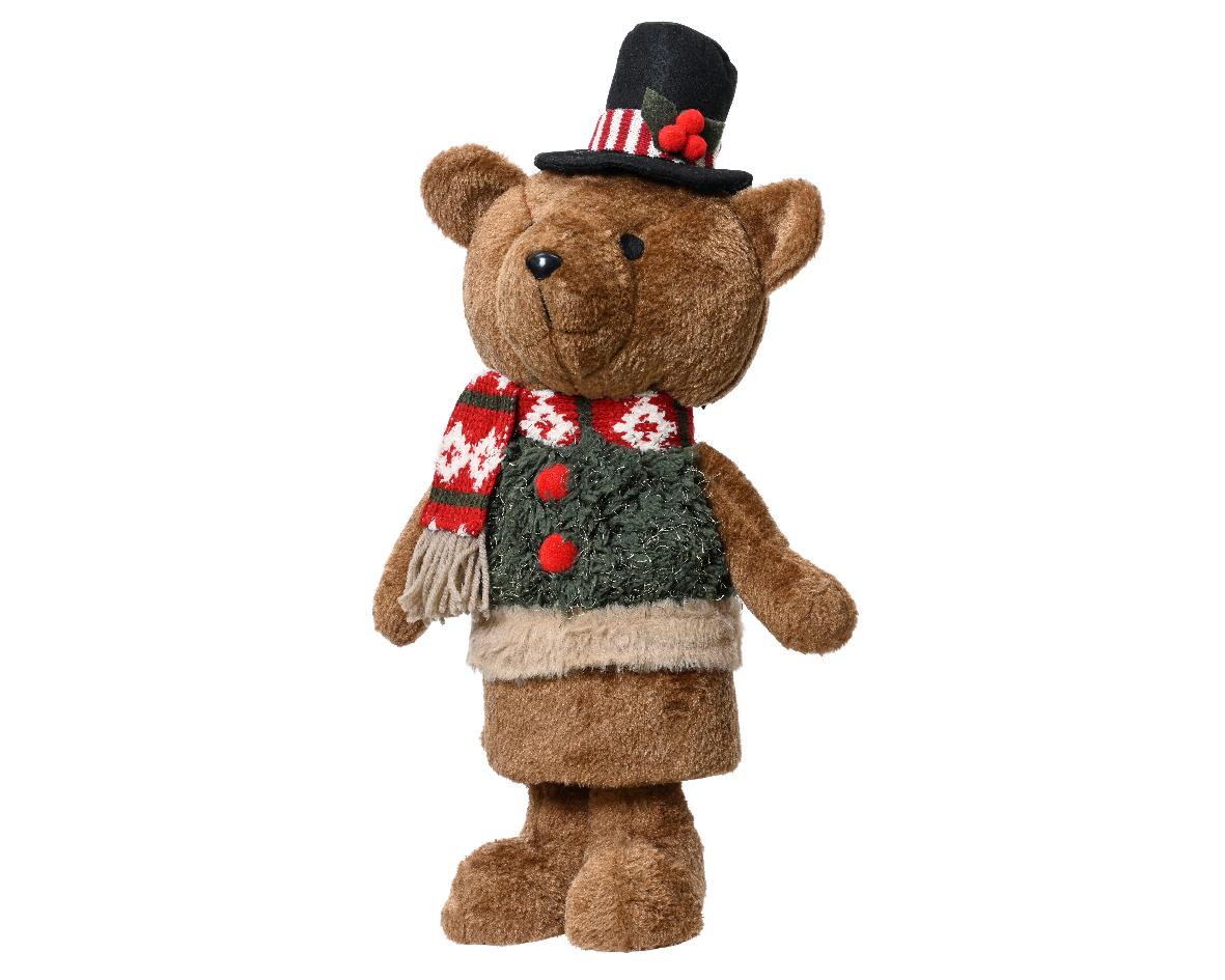 CHRISTMAS TEDDY BEAR WITH TOP HAT AND GREEN JUMPER KAEMINGK Synthetic L0.21W0.16H0.46