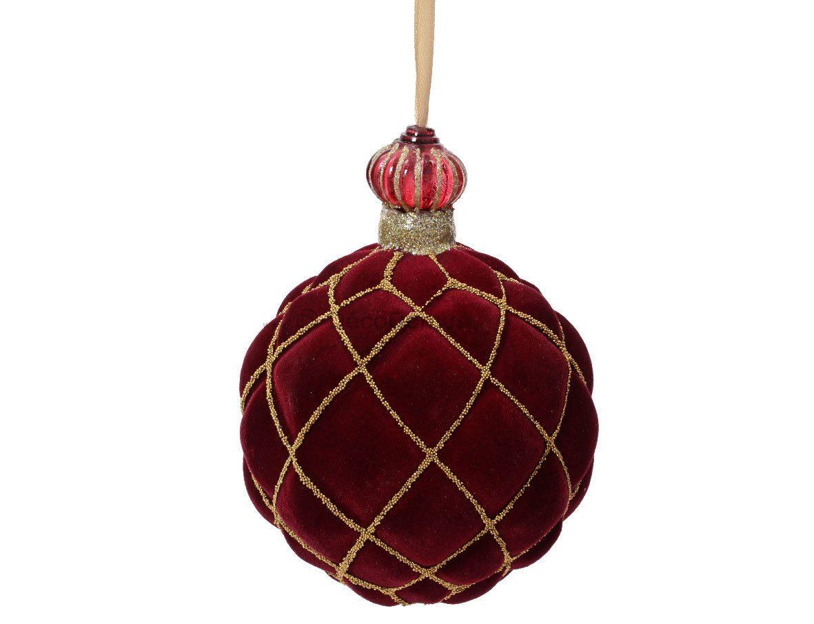GLASS BUBLE WITH VELVET LINING WITH GOLD CHECK ΙΝ OXBLOOD COLOR KAEMINGK Glass Φ0.10*Η0.125