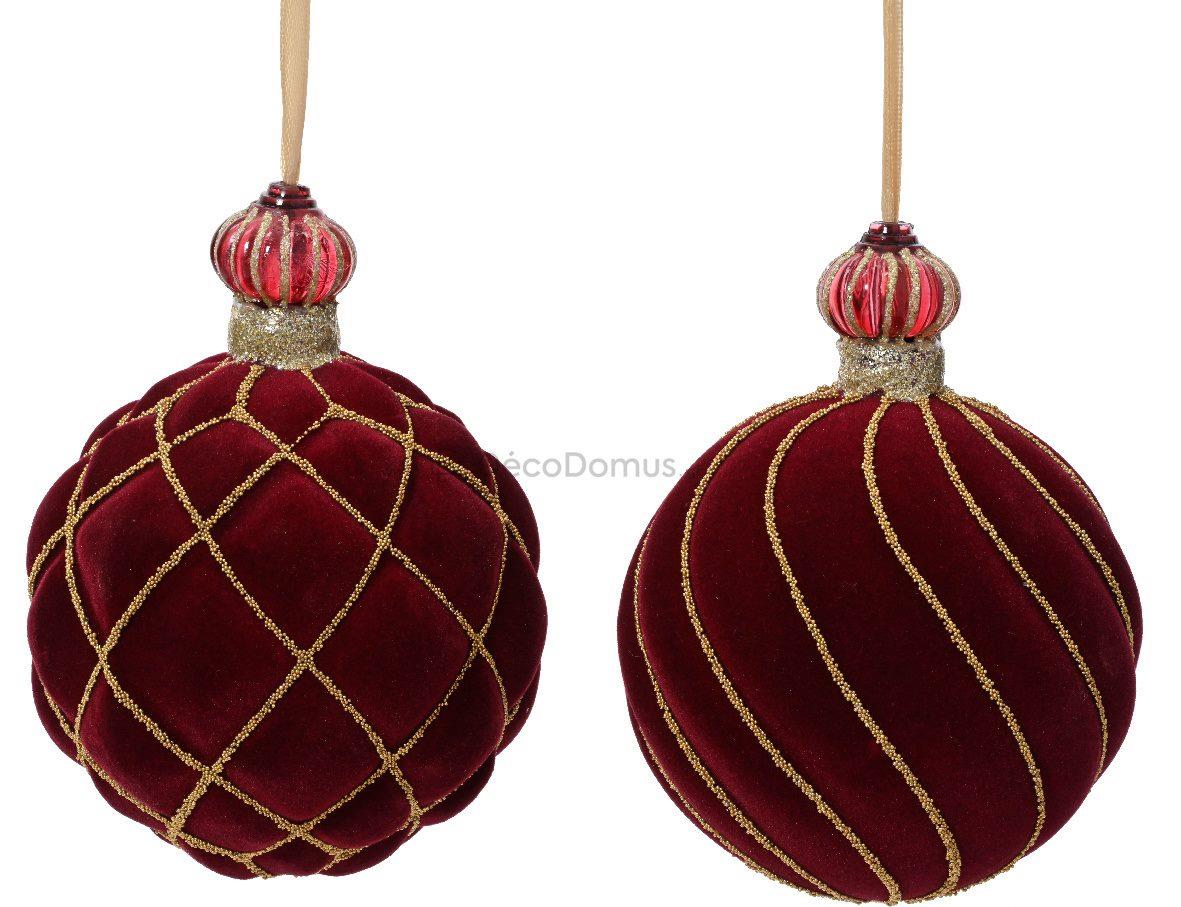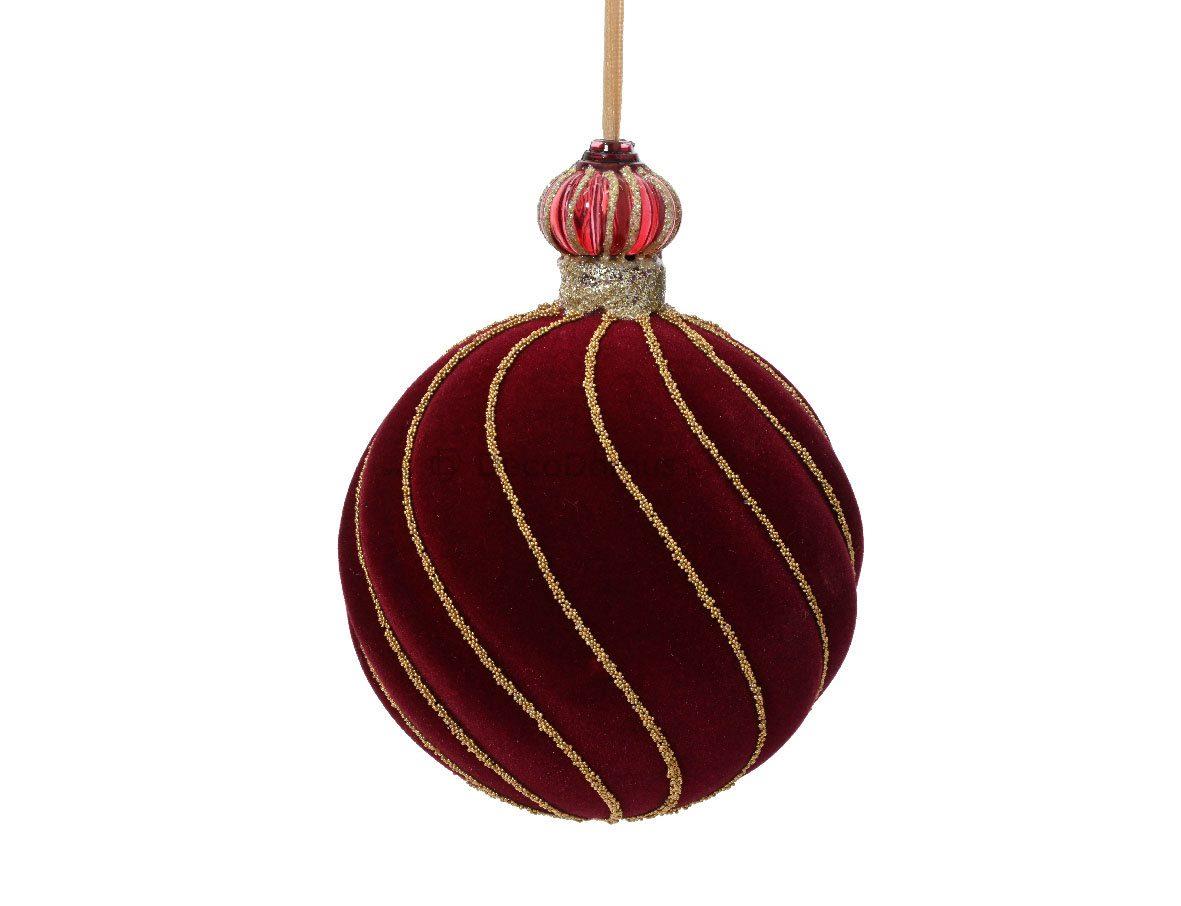 GLASS BUBLE WITH VELVET LINING WITH GOLD STRIPED ΙΝ OXBLOOD COLOR KAEMINGK Glass Φ0.10*Η0.125
