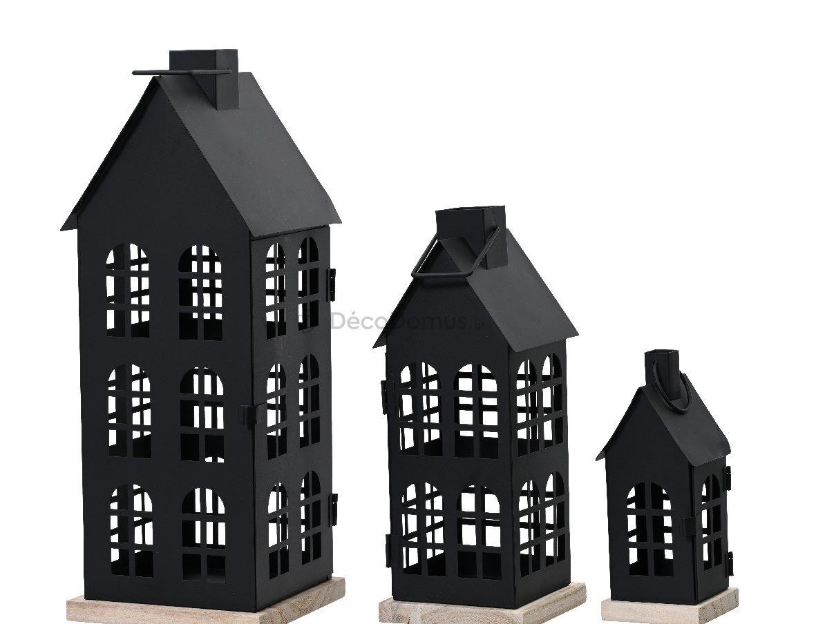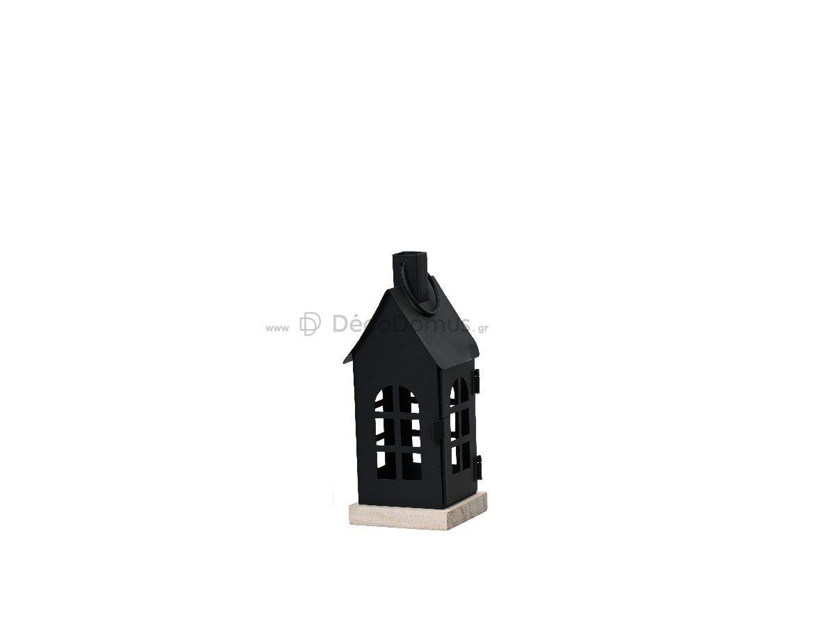 LANTERN IRON HOUSE POWDER COATING WITH WOODEN BOTTOM SMALL Wood L0.08W0.08H0.20