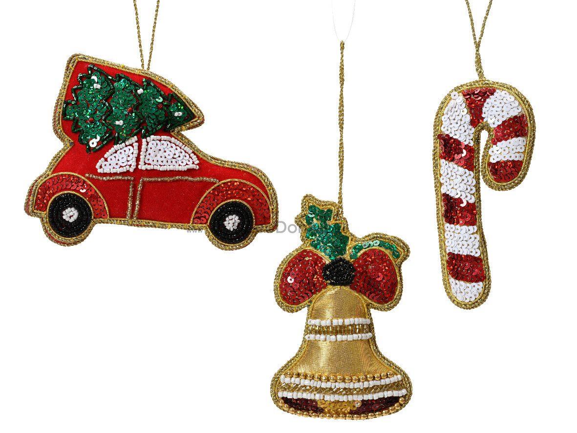 CAR ORNAMENT EMBROIDERED WITH GOLD, BIRDS AND PEARLS KAEMINGK Synthetic L0.10W0.08H0.015