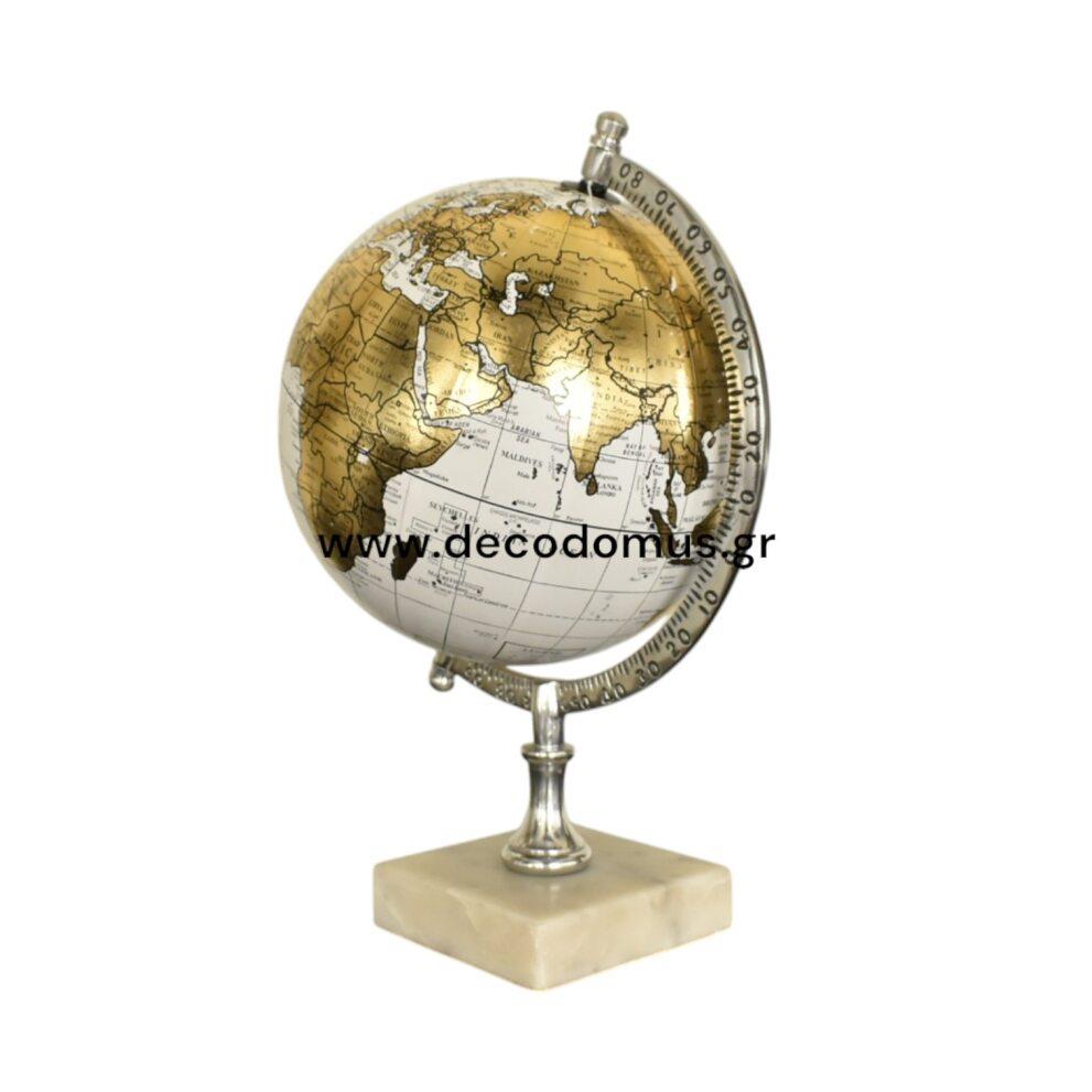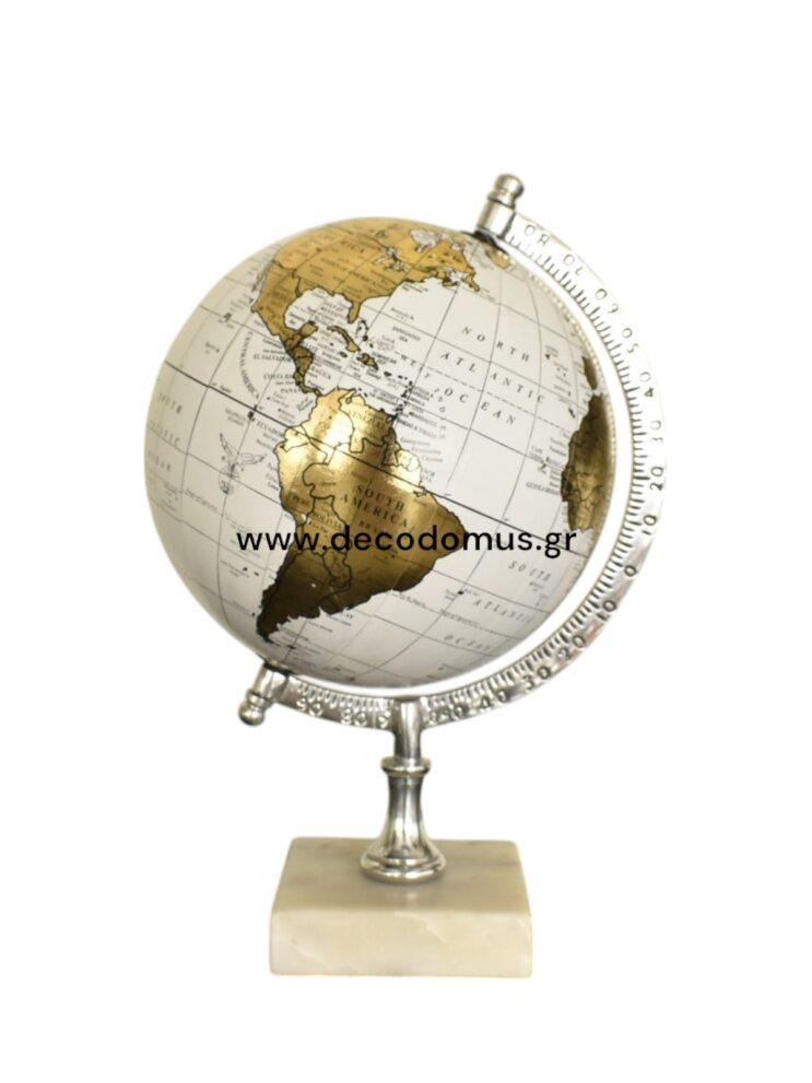 GLOBE WHITE-GOLD ON A MARBLE BASE Metal Φ0.20*Η0.33