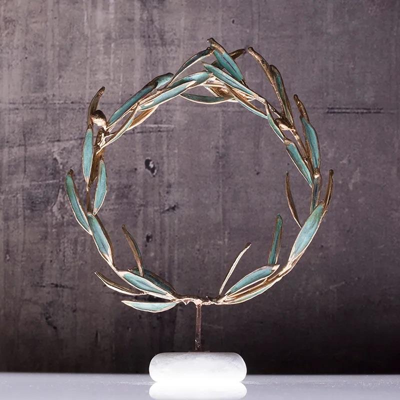 HANDMADE TABLETOP OLIVE WREATH BRASS WITH GREEN PATINA Brass L0.14W0.08H0.18