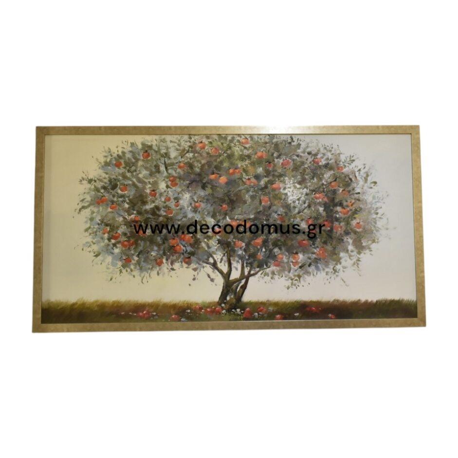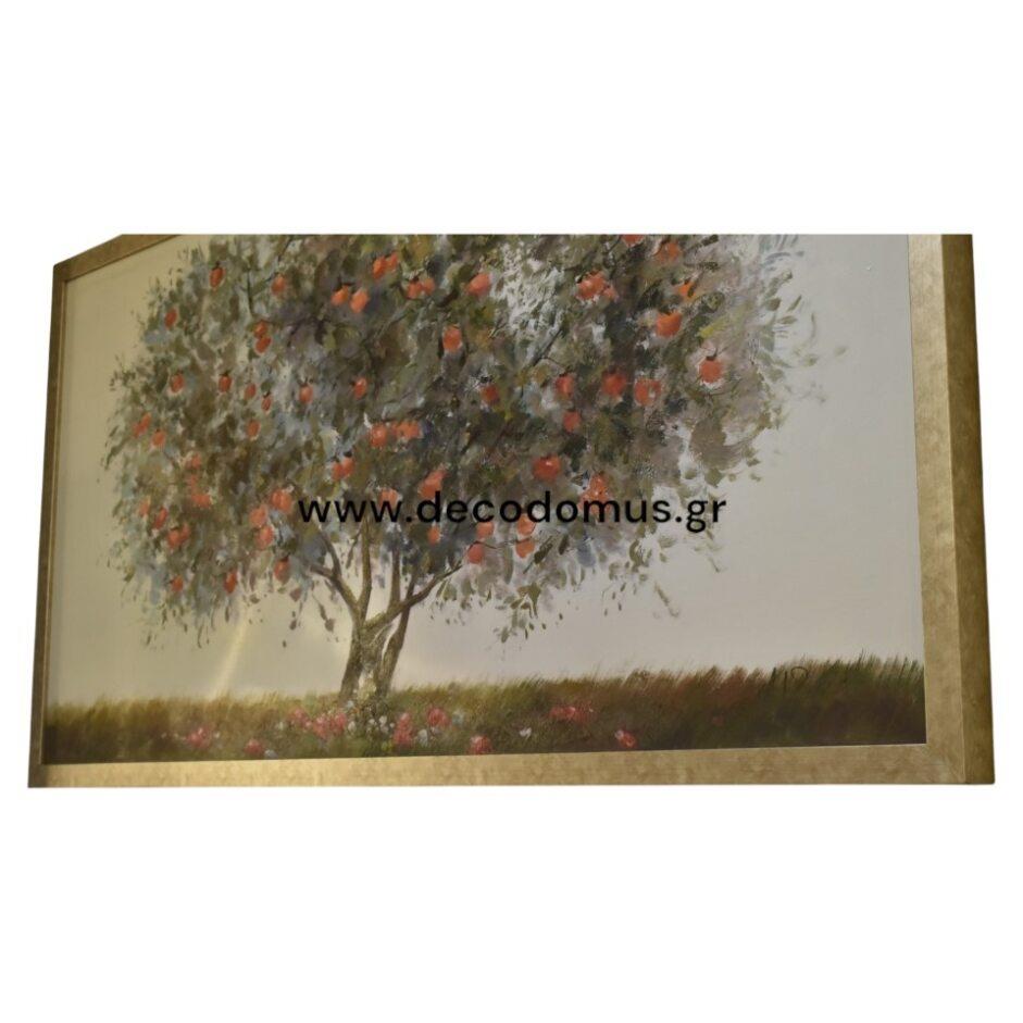 PAINTING OIL PAINTING \"TREE WITH RED FRUITS\", WITH WOODEN SILVER-gilt FRAME 135Χ76 Wood L1.35W0.05H0.76