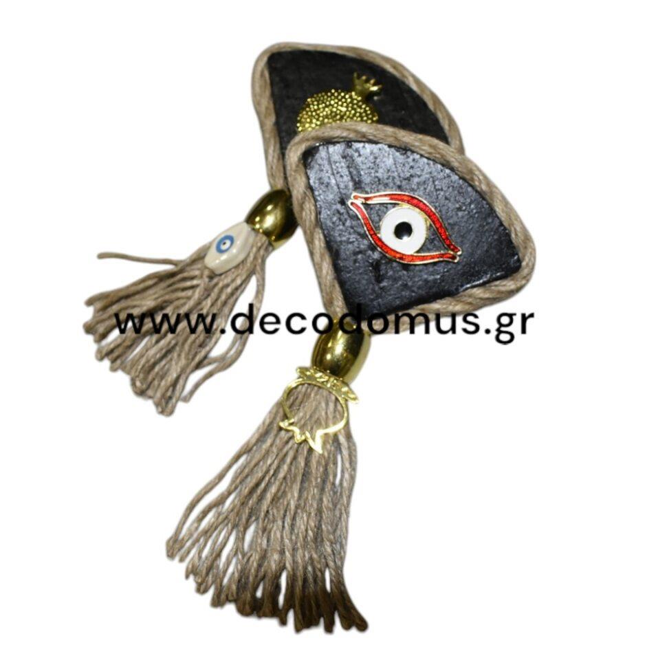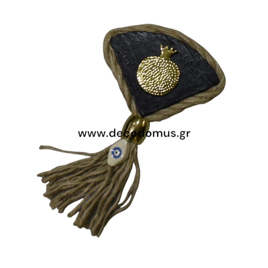 CHARM TRIANGLE BLACK STONE WITH POMEGRANATE AND ROPE Stone 11*17*3Η