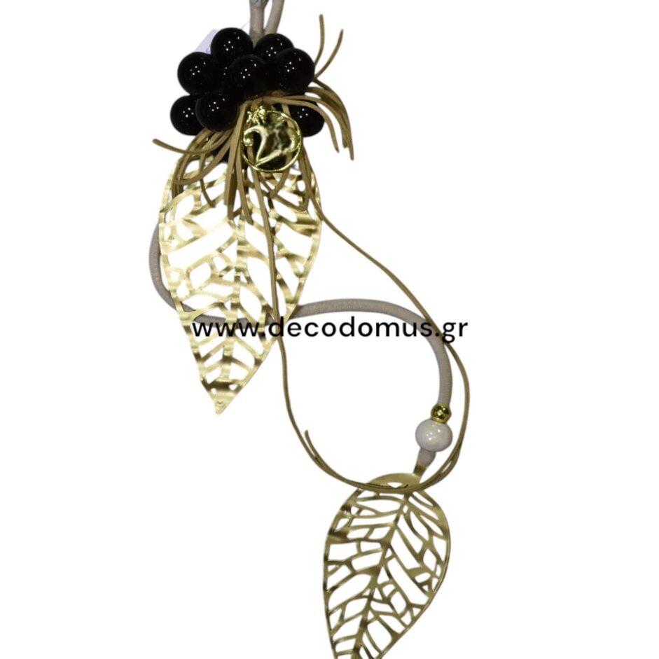 CHARMS WΙΤΗ METALLIC GOLD LEAVES WITH OLD GYH AND BLACK CORD Metal L0.15W0.12H0.5