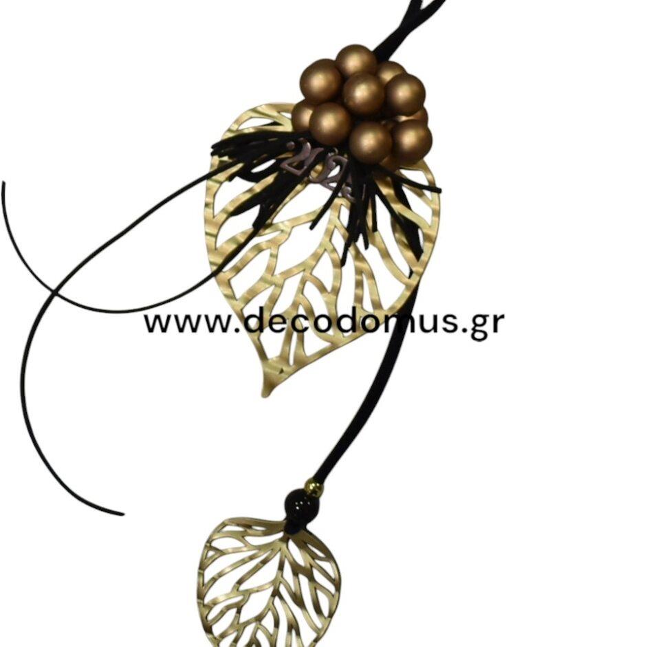CHARMS WΙΤΗ METALLIC BLACK LEAVES WITH GOLD GYH AND BEIGE CORD Metal L0.17W0.08H0.05