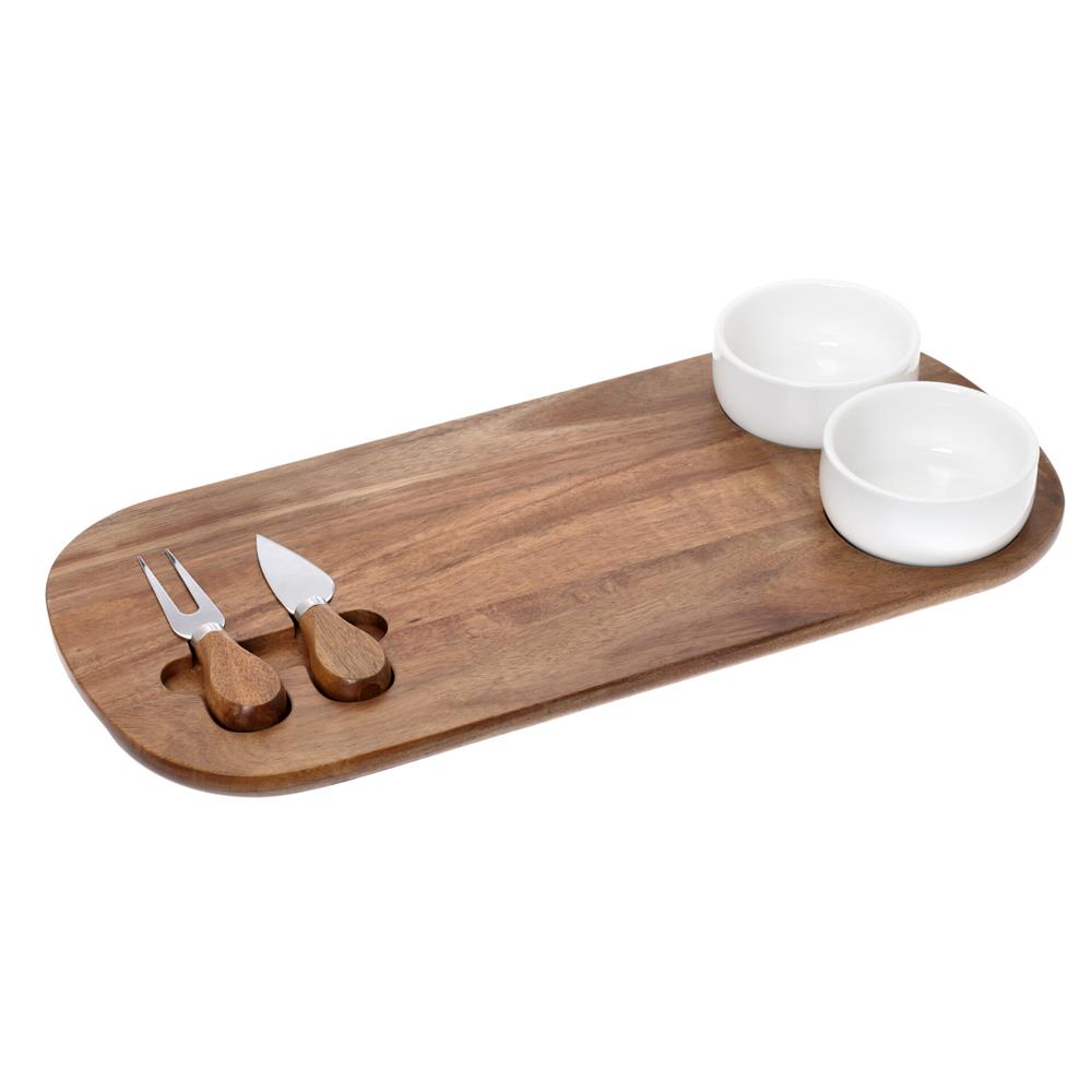 WOODEN PLATER GOURMET WITH TWO CHEESE KNIVES AND TWO PORCELAIN BOWLS Porcelain L0.44W0.20H0.02
