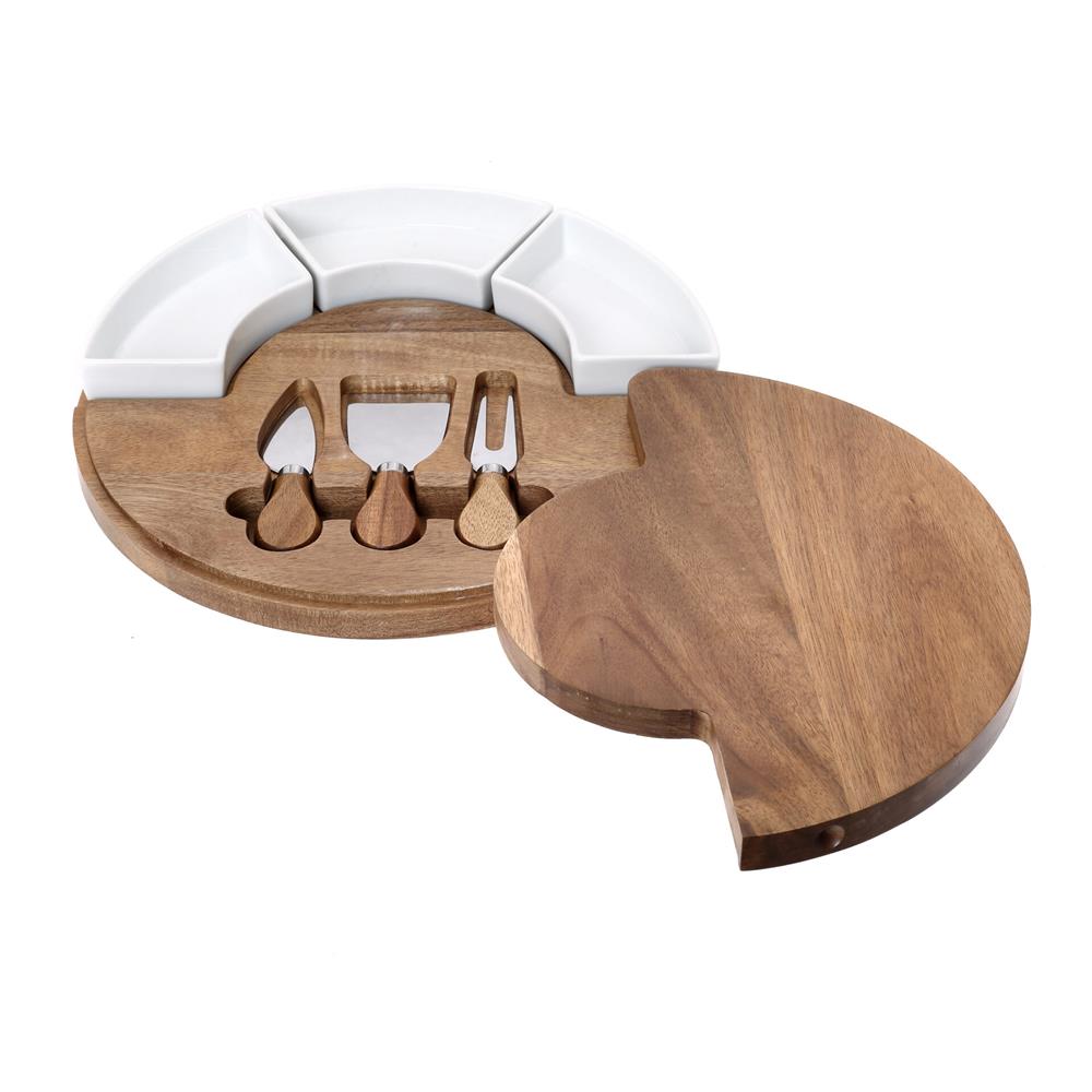 WOODEN PLATER GOURMET WITH THREE CHEESE KNIVES AND THREE PORCELAIN BOWLS Porcelain Φ0.30*Η0.02