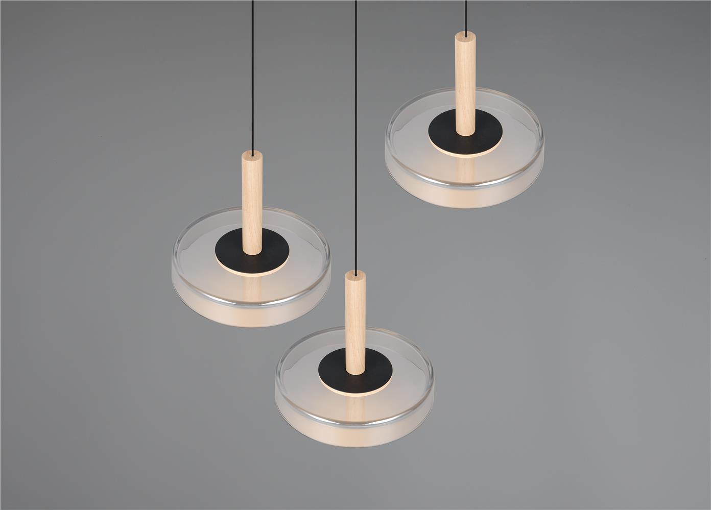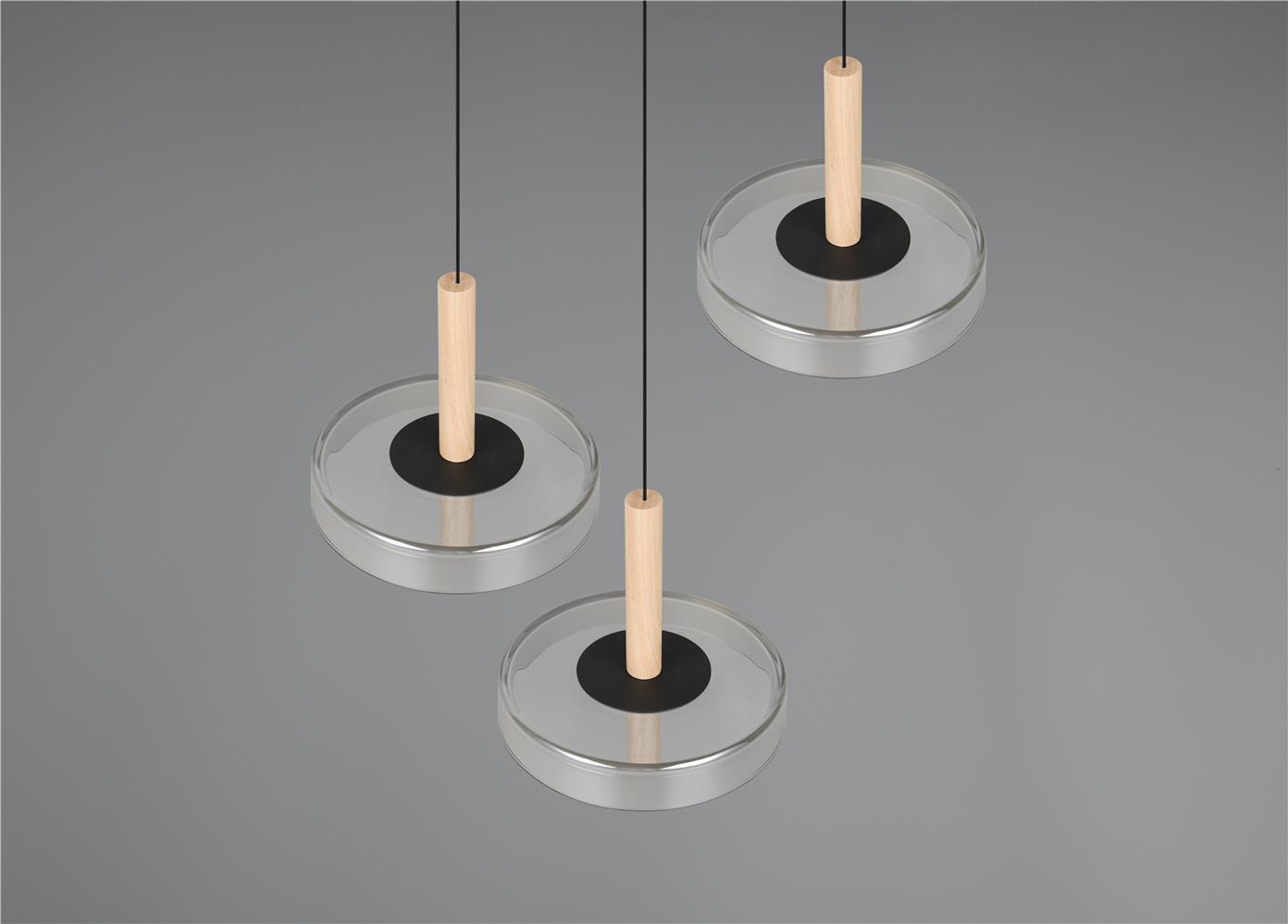 The CELESTE pendant light combines stylish elegance with high functionality. Its unique design of metal, glass and wood creates special accents in any room. The futuristically designed glass shades fascinate with a reflective surface that creates breathtaking plays of light and a warm, inviting atmosphere. With the innovative Lift me function, the height of the light sources can be flexibly adjusted to suit your needs. Whether above the dining table, in the kitchen or in the living room - CELESTE always provides the perfect lighting. Thanks to the integrated SWITCH dimmer, you can control the brightness in three levels directly via the conventional light switch. This gives you full control over the light intensity and allows you to adjust the light to suit your mood or the time of day. The stylish combination of black matt metal, chrome-plated glass and natural wood blends seamlessly into both modern and classic furnishing styles and allows the light to shine in any setting. The luminaire also features modern LED technology, which is characterised by high light quality and energy efficiency. Compared to conventional halogen light sources, up to 80% of energy costs can be saved. LED light sources also have a long service life, produce less heat and protect the environment.