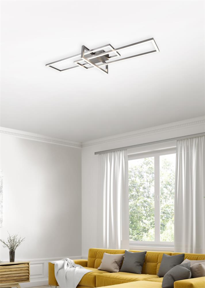 The SALINAS wall and ceiling light enriches your interior design concept with an elegant and impressive design. As a ceiling light in the hallway or wall object in the living room, the light emphasises the modern living style and provides pleasant lighting with three differently aligned light elements. The luminaire also has a SWITCH dimmer, allowing the brightness to be adjusted from 100%, to 50% and to 25% using a conventional light switch. The timeless colour design in matt nickel turns the light into an elegant living element that is an absolute highlight even when switched off. In addition, the luminaire features modern LED technology, which is characterised by high light quality and energy efficiency. Compared to conventional halogen lamps, up to 80% of energy costs can be saved. In addition, LED light sources have a long service life, produce less heat and protect the environment.
