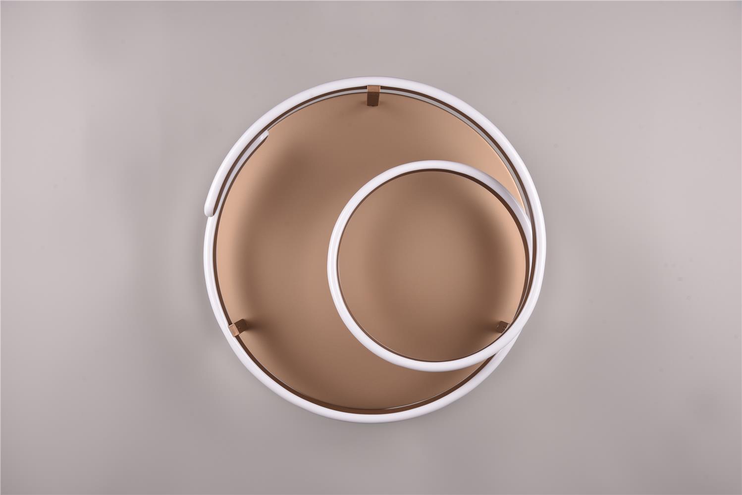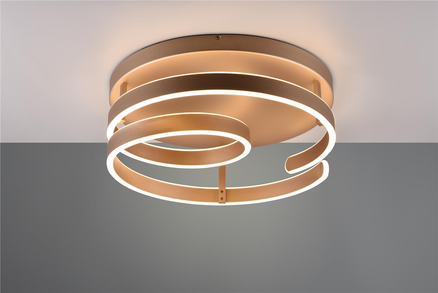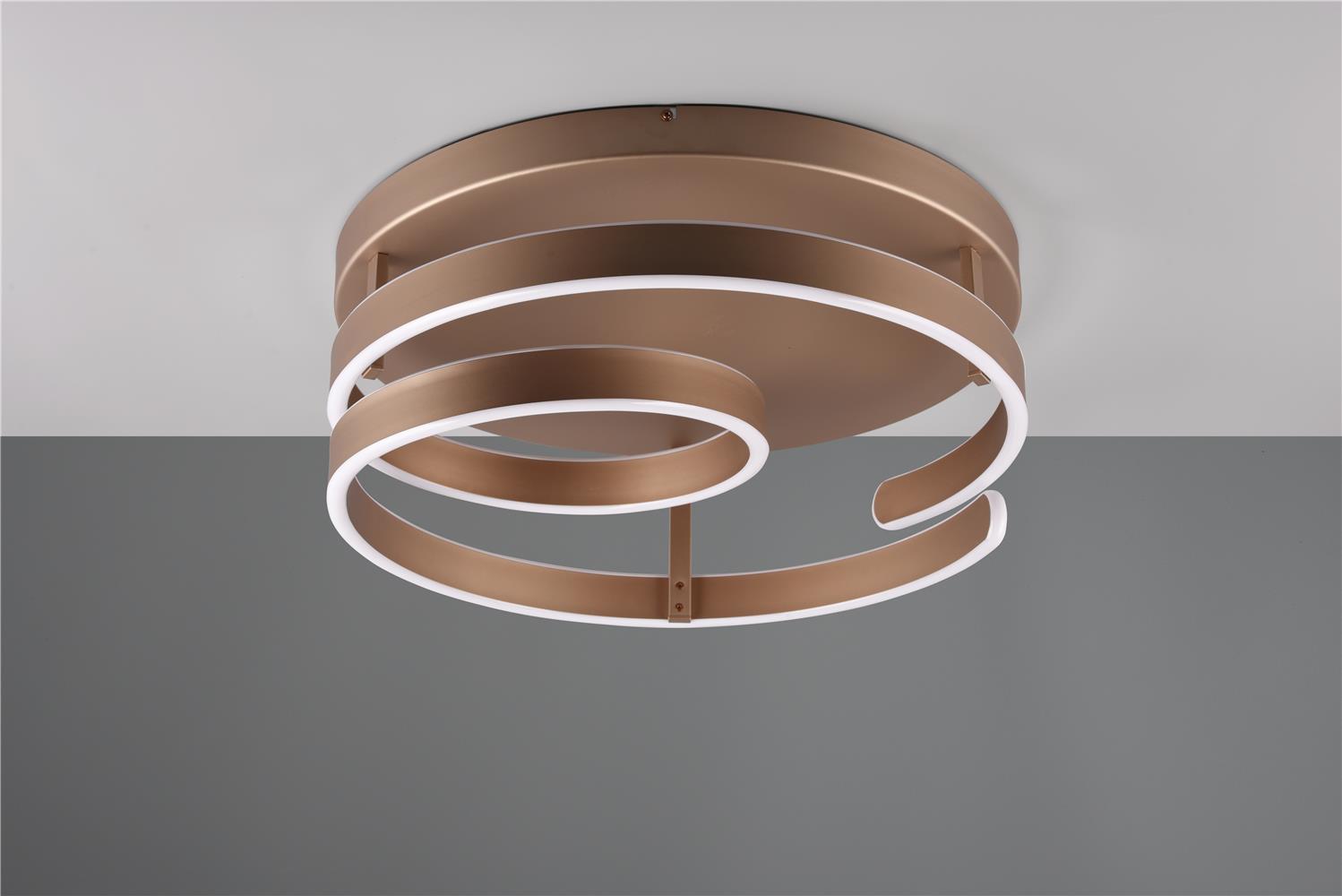 The MARNIE ceiling light plays with its curved shape and makes a strong statement. The spiral-shaped luminaire makes a big impact in the dining room or living room above a table. The indirect lighting enriches your living area with a pleasant lighting ambience. Thanks to the SWITCH dimmer, the light can be dimmed in stages (100%, 50% and 25%) using a conventional light switch. Create a special centrepiece in your living space! The special design language and the colour scheme in coffee set modern accents in your interior. The luminaire also features modern LED technology, which is characterised by high light quality and energy efficiency. Compared to conventional halogen light sources, up to 80% of energy costs can be saved. With LED light sources, you also benefit from a long service life and low heat generation while protecting the environment.