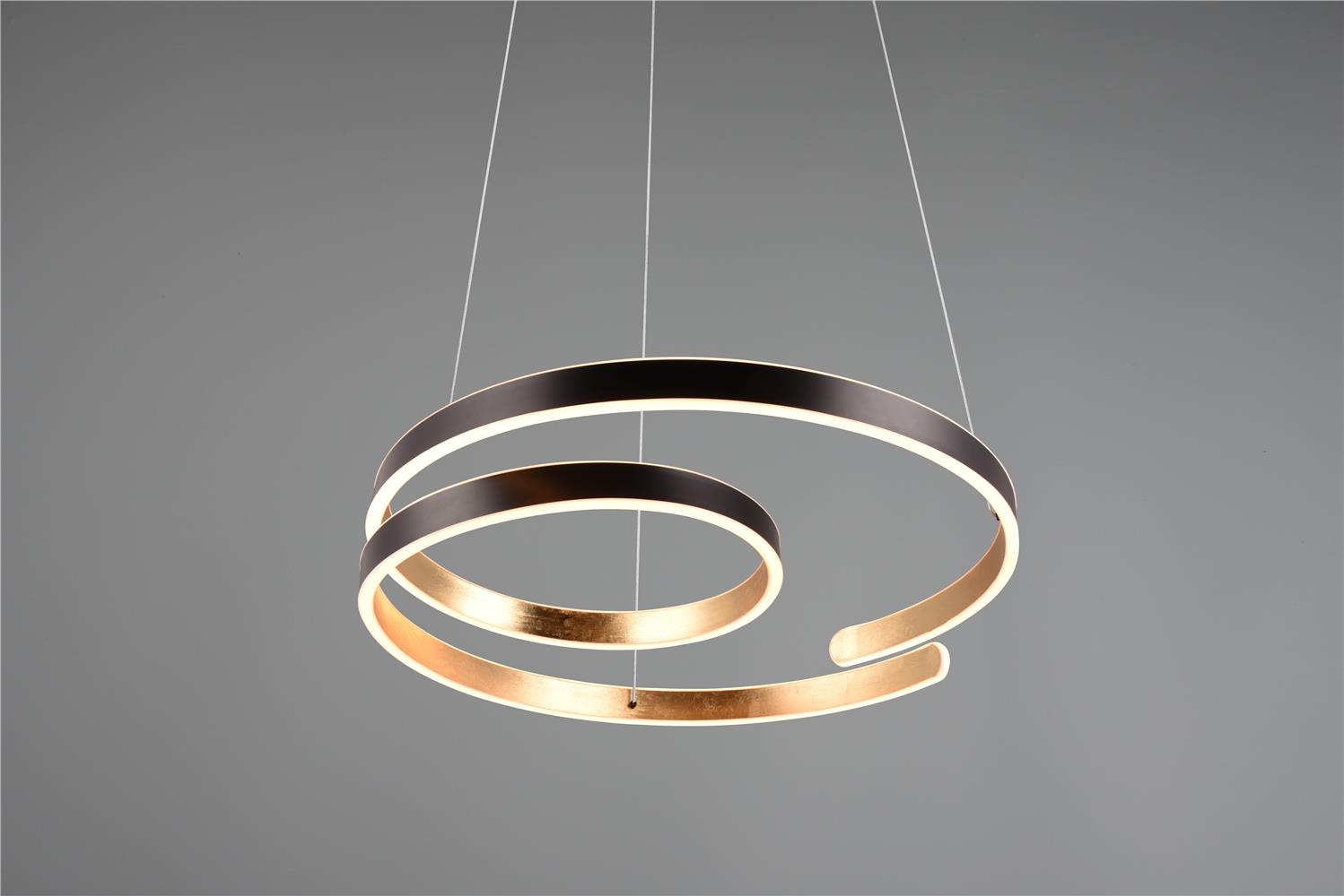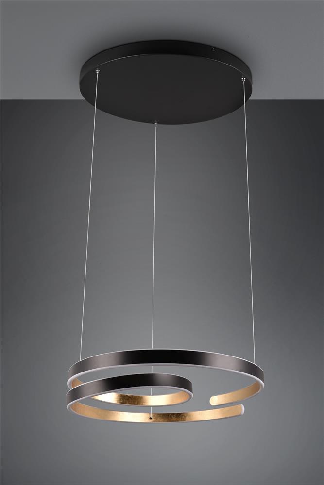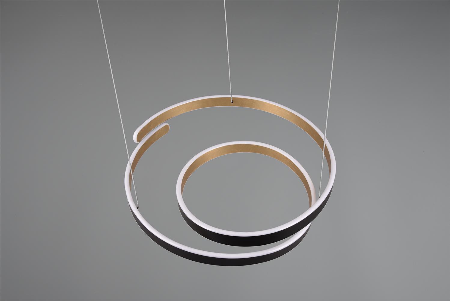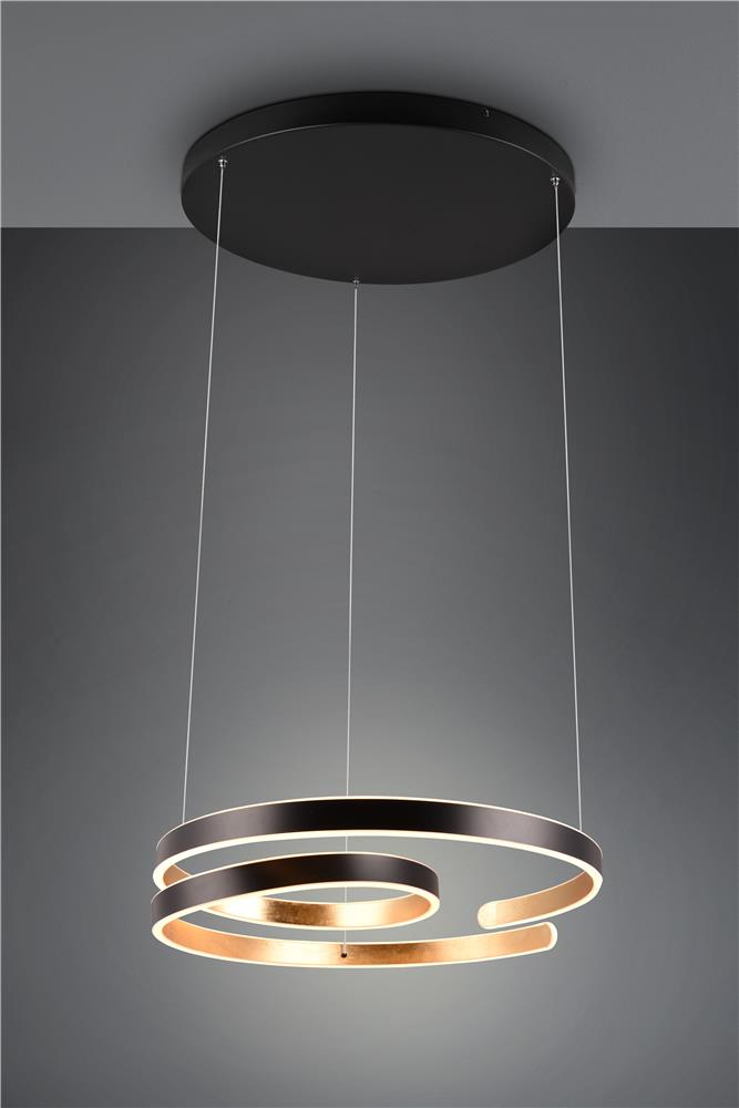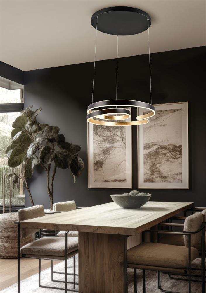 The MARNIE pendant light plays with its curved shape and makes a strong statement. The spiral-shaped luminaire is most effective in the dining room above a table. The indirect lighting enriches your living area with a pleasant lighting ambience. Thanks to the SWITCH dimmer, the light can be dimmed in stages (100%, 50% and 25%) using a conventional light switch. Make your dining area the centre of the room! The special design language and the black and gold colour scheme set modern accents in your interior. The luminaire also features modern LED technology, which is characterised by high light quality and energy efficiency. Compared to conventional halogen light sources, up to 80% of energy costs can be saved. With LED light sources, you also benefit from a long service life and low heat generation while protecting the environment.