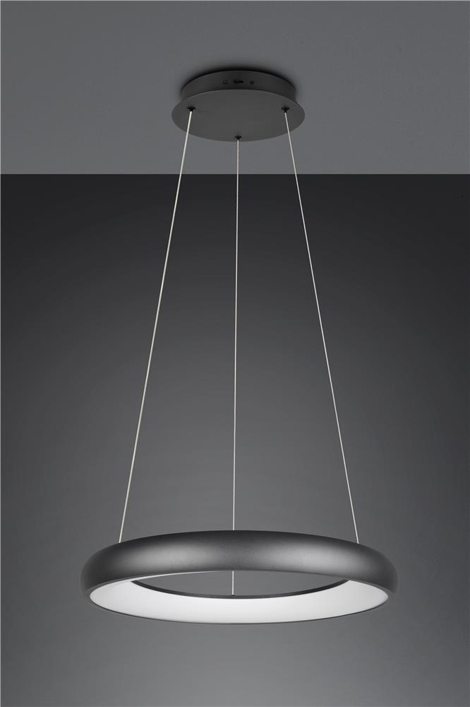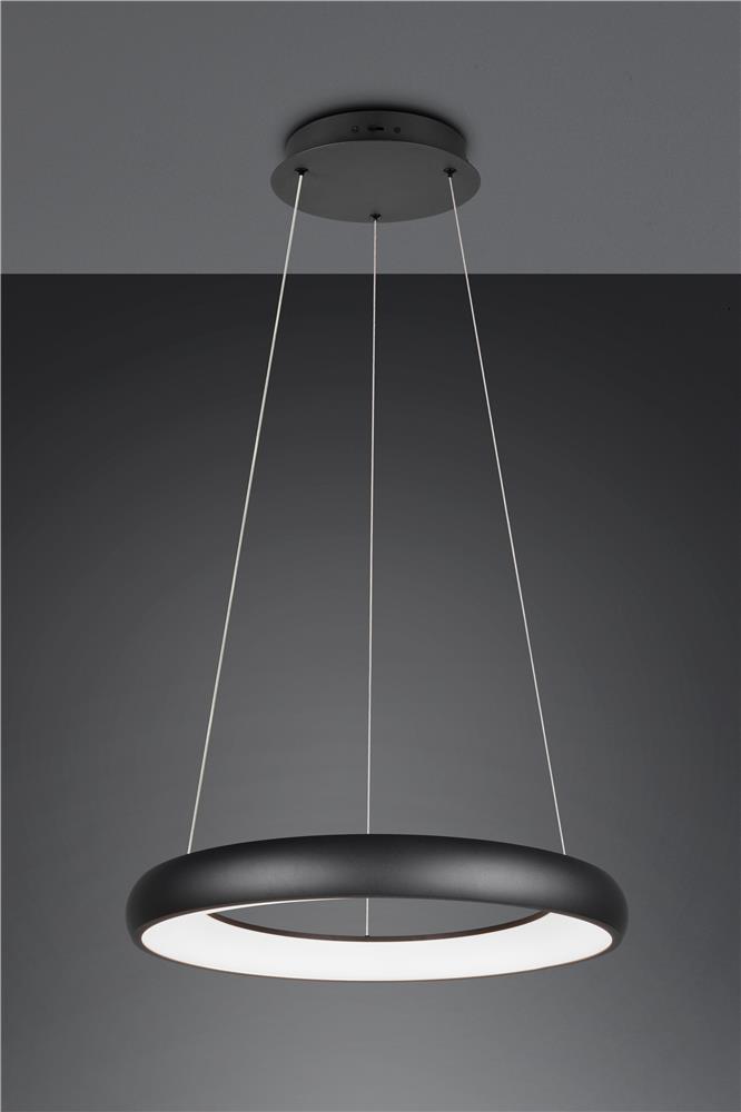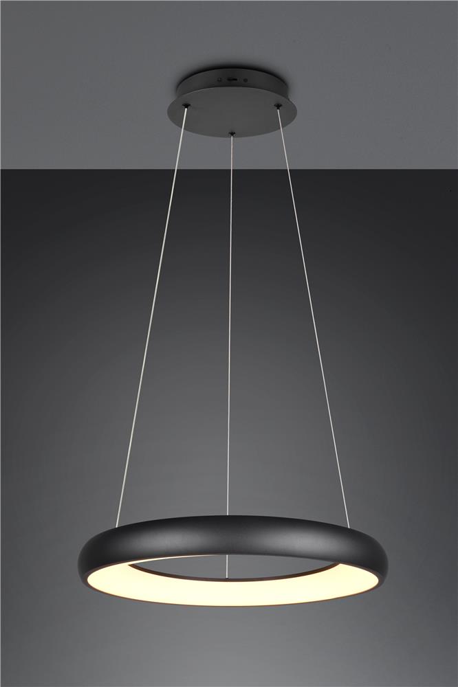 Clarity and functionality combined - the CARDONA pendant light impresses with its striking design, which is characterised by a floating ring. This elegant ring seems to literally float in the room and attracts everyone\'s attention. Ideal for modern living rooms, offices or dining rooms, the luminaire provides uniform, glare-free lighting thanks to the subtle light source inside the ring, creating a pleasant atmosphere. The brightness can be regulated in three levels using a conventional light switch and the light colour can be adjusted directly using a switch on the luminaire. The white matt surface gives every room a timeless elegance and a modern touch. The luminaire also features modern LED technology, which is characterised by high light quality and energy efficiency. Compared to conventional halogen light sources, up to 80% of energy costs can be saved. LED light sources also have a long service life, produce less heat and protect the environment.