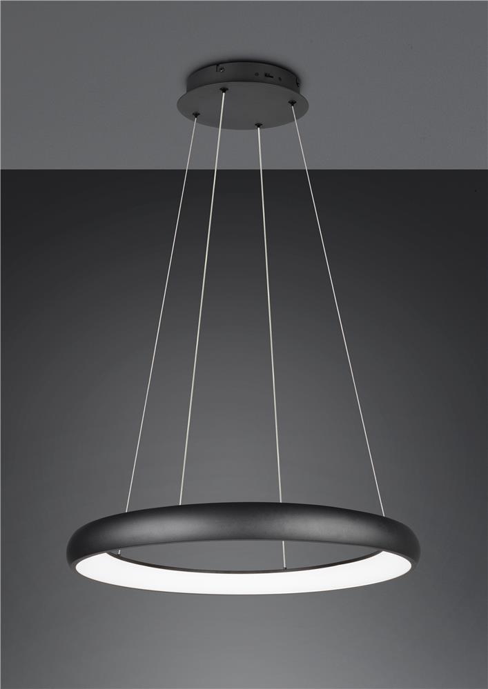 Clarity and functionality combined - the CARDONA pendant light impresses with its striking design, which is characterised by a floating ring. This elegant ring seems to literally float in the room and attracts everyone\'s attention. Ideal for modern living rooms, offices or dining rooms, the luminaire provides uniform, glare-free lighting thanks to the subtle light source inside the ring, creating a pleasant atmosphere. The brightness can be regulated in three levels using a conventional light switch and the light colour can be adjusted directly using a switch on the luminaire. The white matt surface gives every room a timeless elegance and a modern touch. The luminaire also features modern LED technology, which is characterised by high light quality and energy efficiency. Compared to conventional halogen light sources, up to 80% of energy costs can be saved. LED light sources also have a long service life, produce less heat and protect the environment.