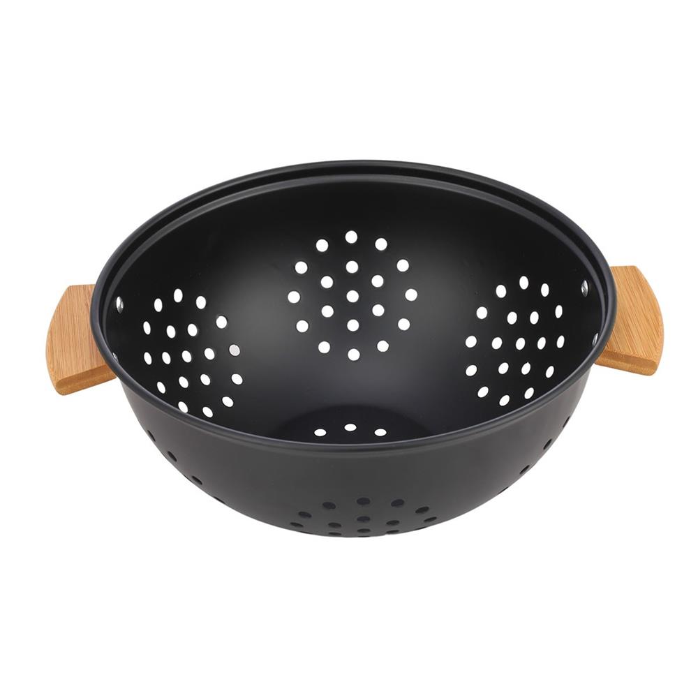 PREMIUM BLACK COLANDER 24CM WHITH WOODEN HANDLES Metal L0.30W0.25H0.09