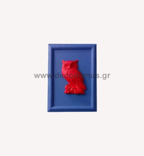 RELIEF FRAME ``OWL`` RED IN BLUE FRAME 35Χ25 Ceramine 0.25*H0.35