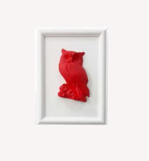 RELIEF FRAME ``OWL`` RED IN WHITE FRAME 35Χ25 Ceramine 0.25*H0.35