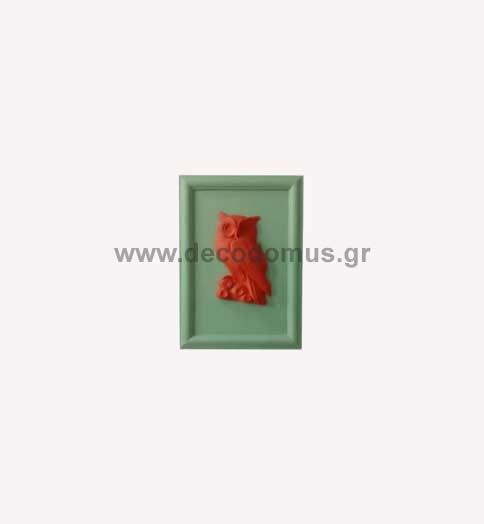 RELIEF FRAME ``OWL`` RED IN OLIVE GREEN FRAME Ceramine 0.25*H0.35