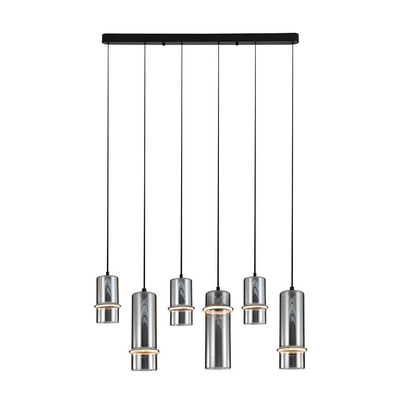 PENDANT SIX LAMPS LED LINE LIGHT 26W 3000K SMOKE GLASS-BLACK Metal L1.02W0.11H2.14