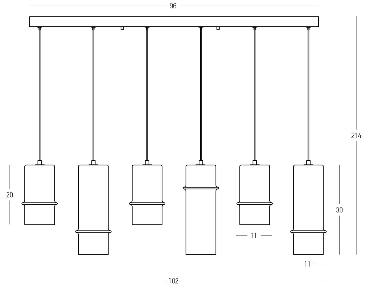 PENDANT SIX LAMPS LED LINE LIGHT 26W 3000K CHAMPAGNE GLASS-BLACK Metal L1.02W0.11H2.14