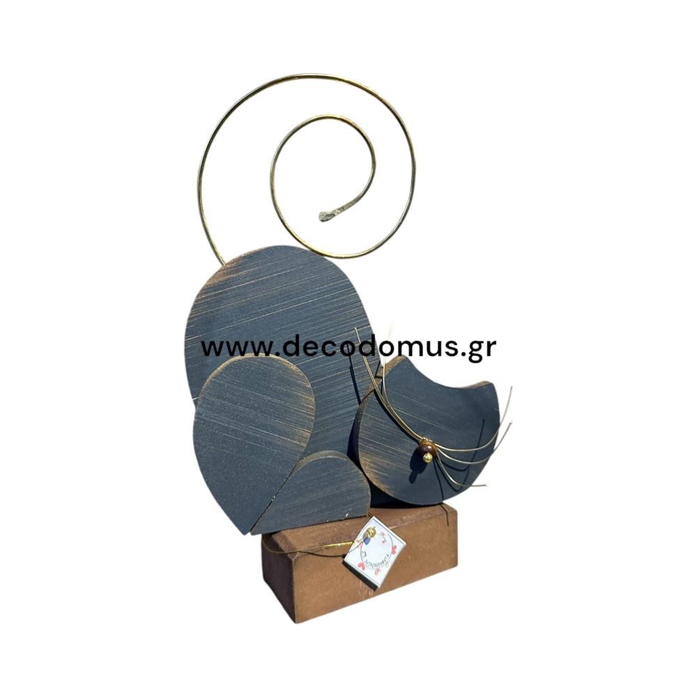 WOODEN CAT GREY TABLETOP ON WOODEN BASE Metal L0.13W0.04H0.21
