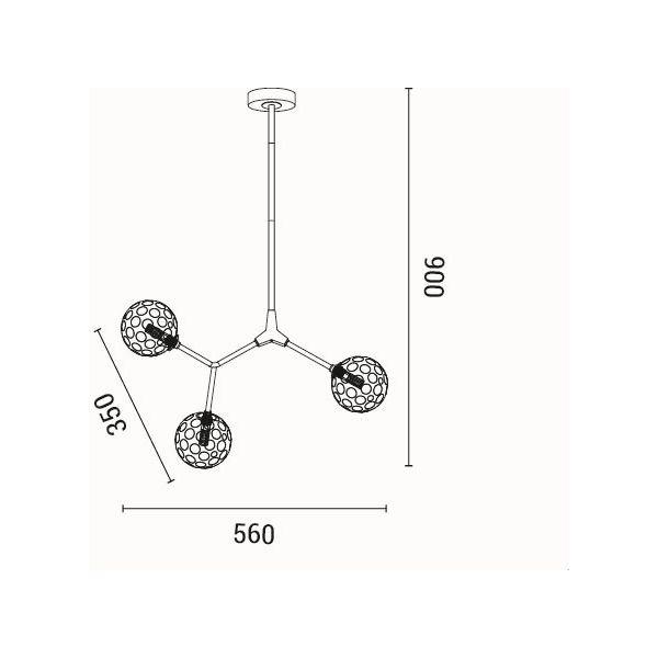 PENDANT LIGHT 3LIGHTS 3XG9 MAX15W 800X900mm BLACK-GRAY ARTE ILLUMINA ATOM Metal L0.56W0.35H0.90