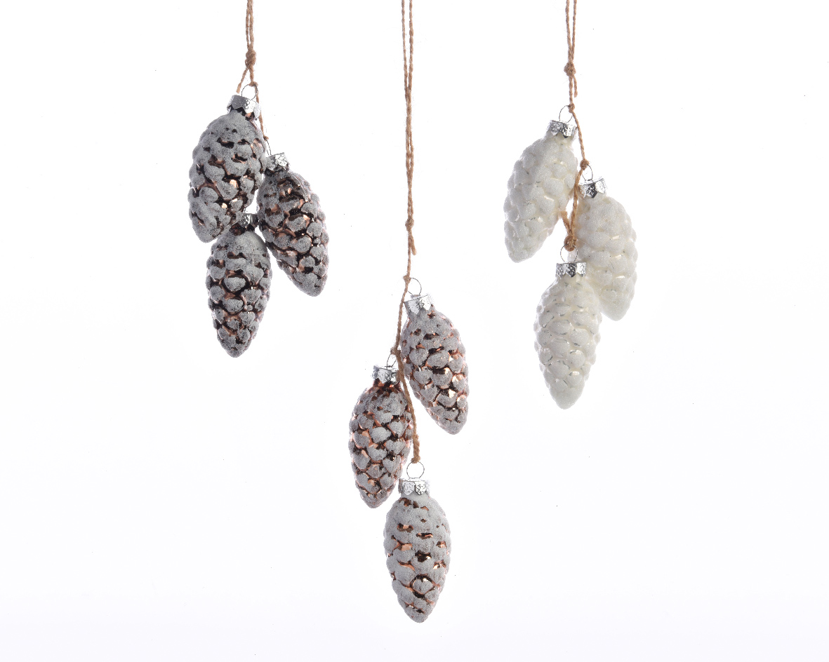 TRIPLE SNOWY PINECONE Glass Φ3*6