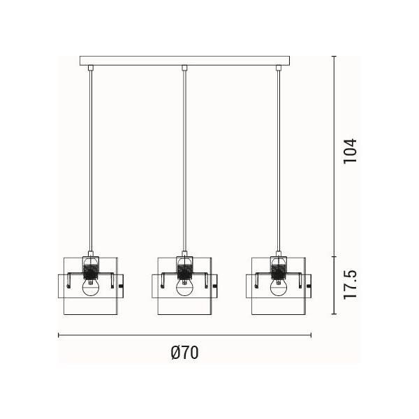 PENDANT LIGHT 3LIGHTS 3XE27 Max 15w 180X1215mm BLACK-GOLD ARTE ILLUMINA RELIAC Metal L0.70W0.18H1.215