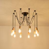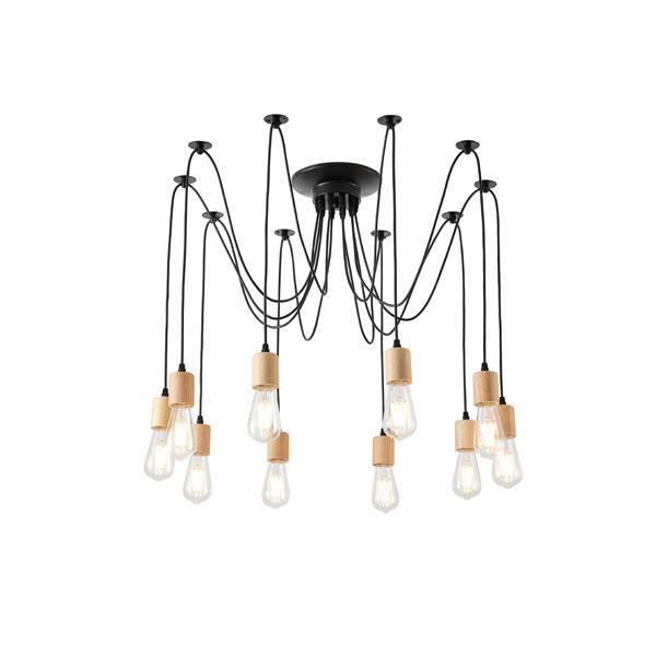 PENDANT LIGHT WOOD-METAL 10LIGHTS 10XΕ27 1000X1000X510mm BLACK ARTE ILLUMINA EDISON Metal Φ1.00*Η0.51
