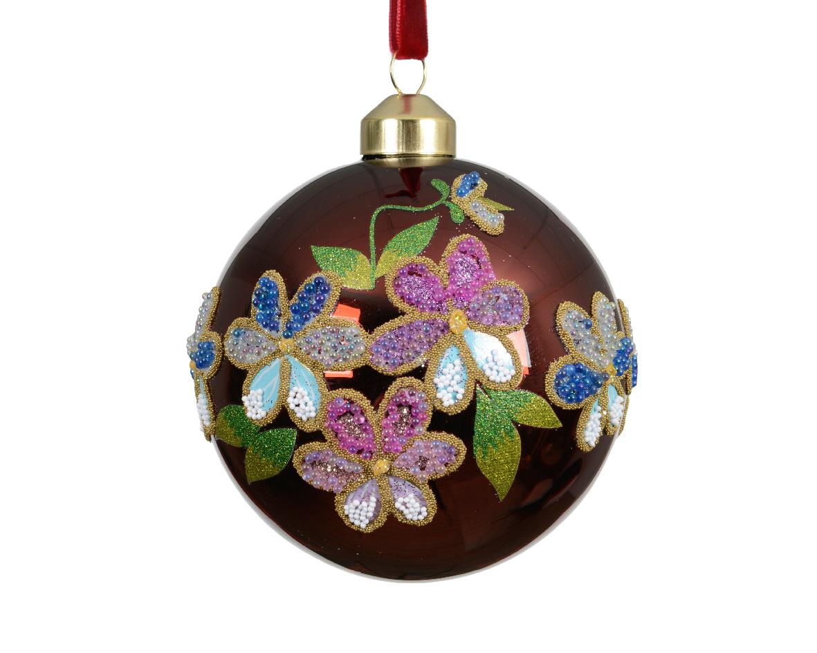 MAROON GLASS BAUBLE WITH MULTICOLOR FLOWERS OF GLITTER AND SEQUINS KAEMINGK Synthetic Φ0.12