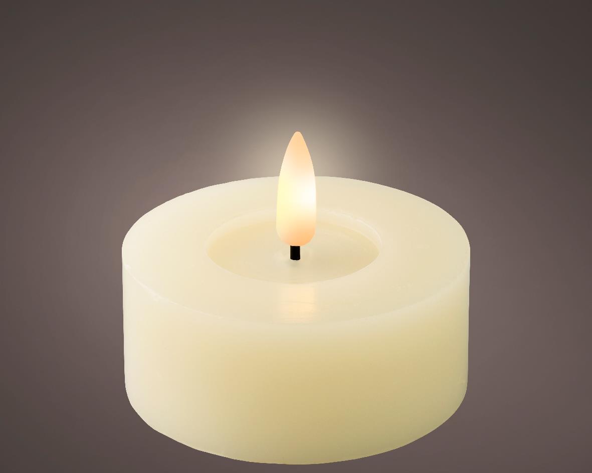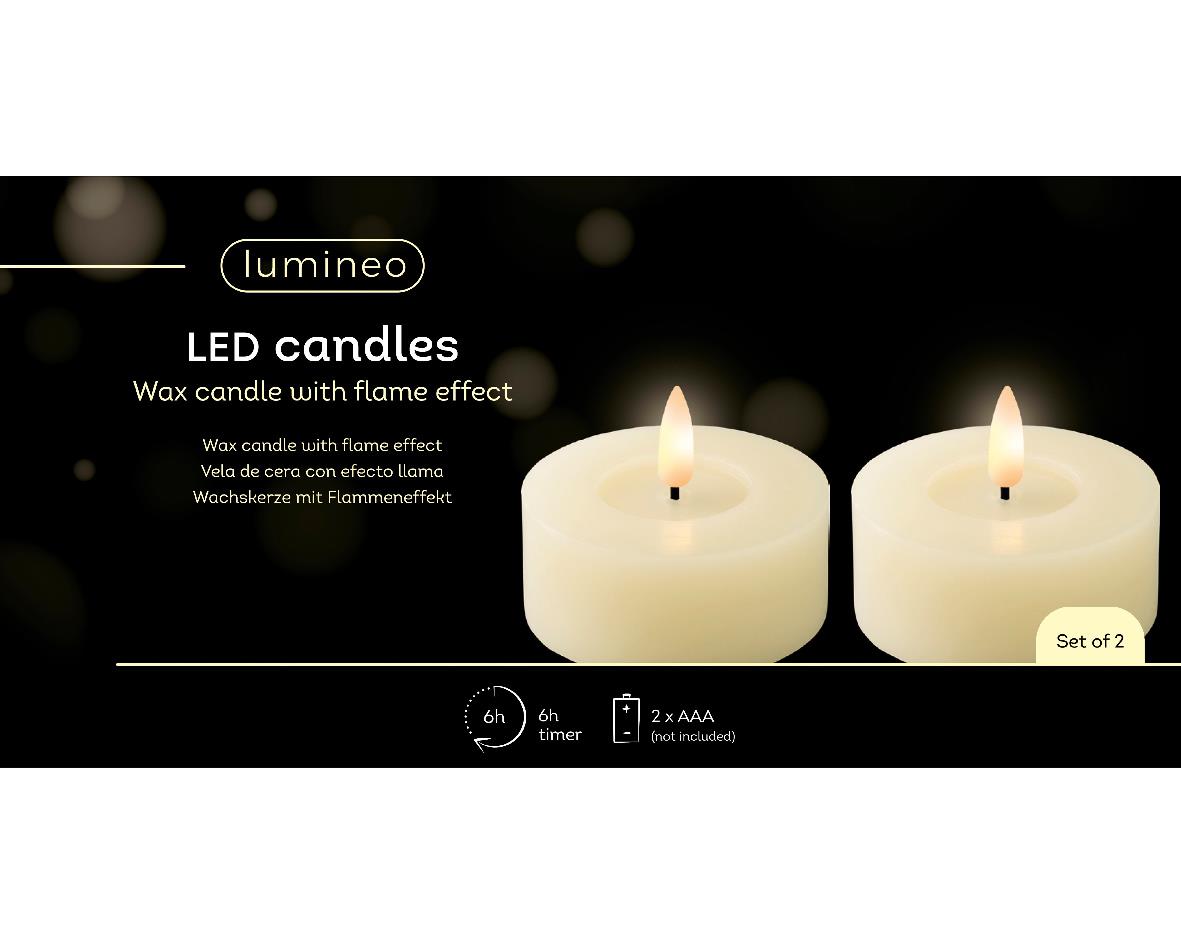 LED TEALIGHT CREAM WITH BATTERY TIMER AND FLAME EFFECT SET OF 2 Candle Φ0.07*Η0.06