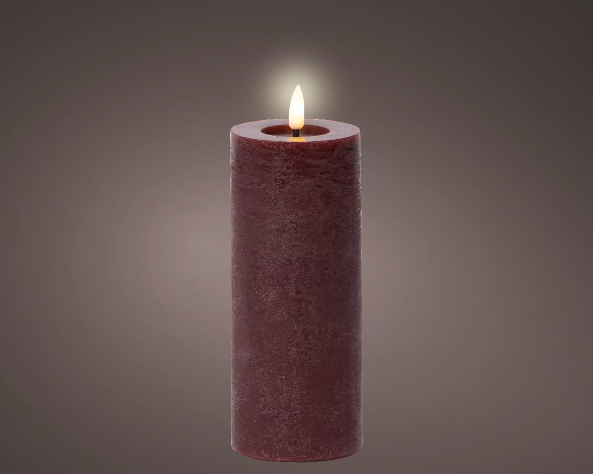 BURGUNDY LED CANDLE MADE OF NATURAL WAX WITH BATTERY AND TIMER FOR INDOOR USE 19CM. Candle Φ0.07*Η0.19