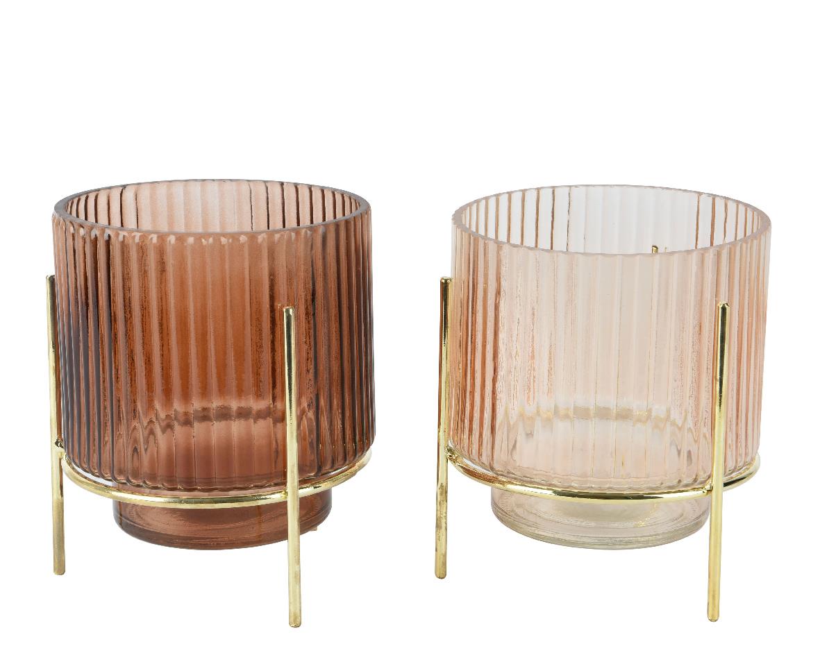 GLASS HURICANE ON METAL GOLD BASE IN 2 COLOURS KAEMINGK Metal Φ0.12*Η0.165