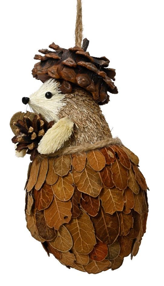 HANGING JUTE HEDGEHOG WITH PINECONE IN A NEST OF LEAVES KAEMINGK Synthetic L0.10W0.10H0.215